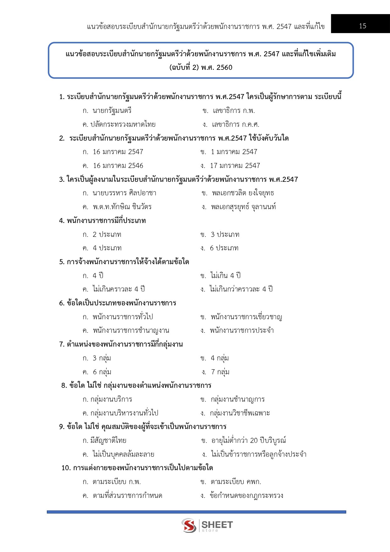 – แนวข้อสอบระเบียบสำนักนายกรัฐมนตรีว่าด้วยพนักงานราชการ พ.ศ. 2547 และแก้ไขเพิ่มเติม (ฉบับที่ 2) พ.ศ. 2560