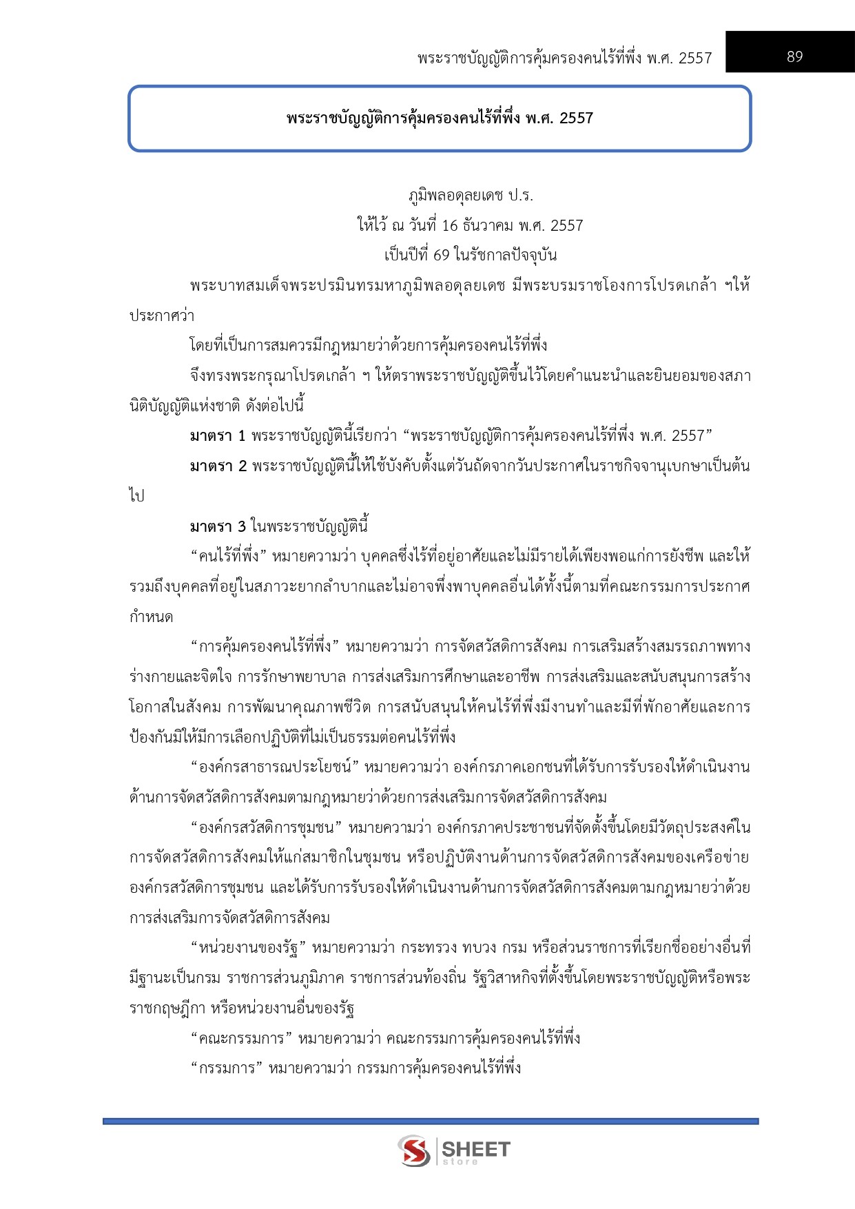 – แนวข้อสอบพระราชบัญญัติการคุ้มครองคนไร้ที่พึ่ง พ.ศ. 2557