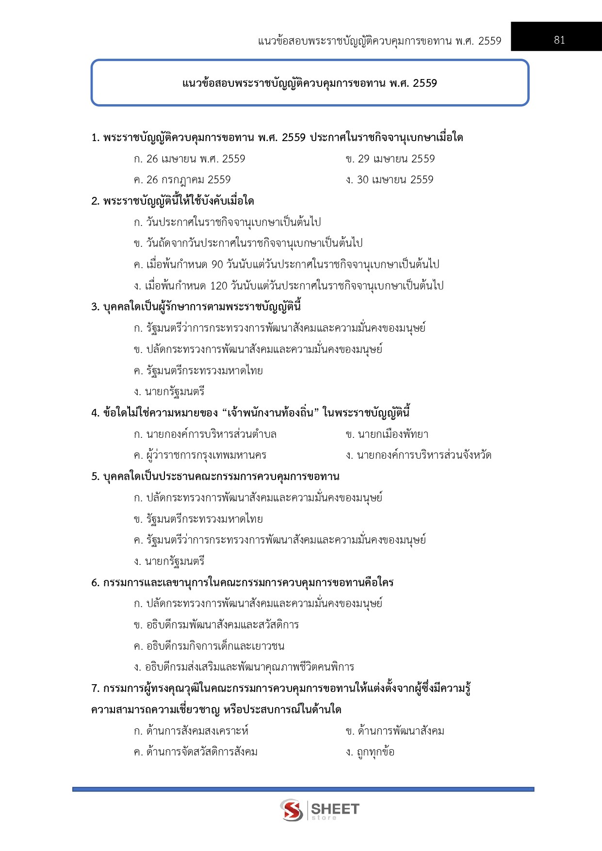 – แนวข้อสอบพระราชบัญญัติการควบคุมขอทาน พ.ศ. 2559