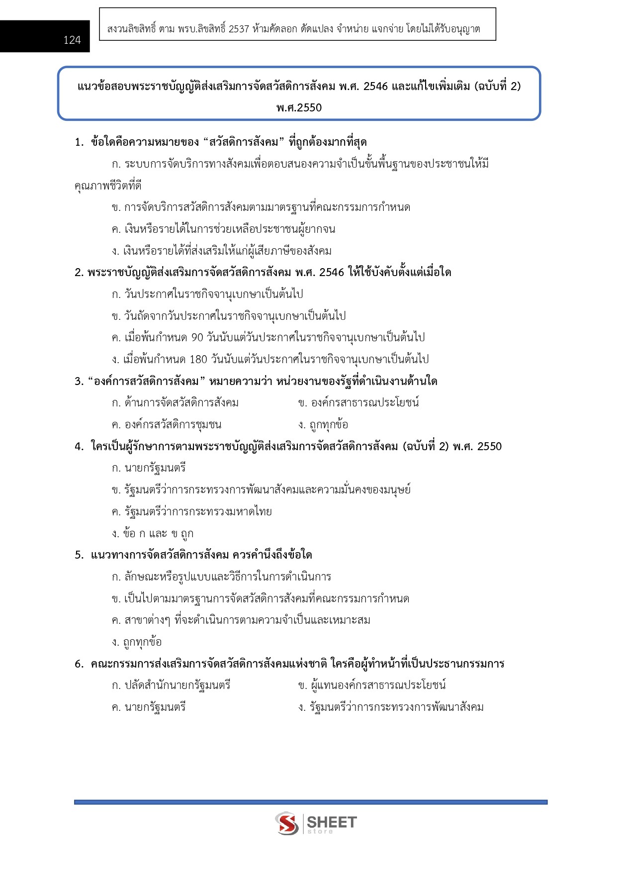 – แนวข้อสอบพระราชบัญญัติส่งเสริมการจัดสวัสดิการสังคม พ.ศ. 2546 และแก้ไขเพิ่มเติม (ฉบับที่ 2) พ.ศ. 2550