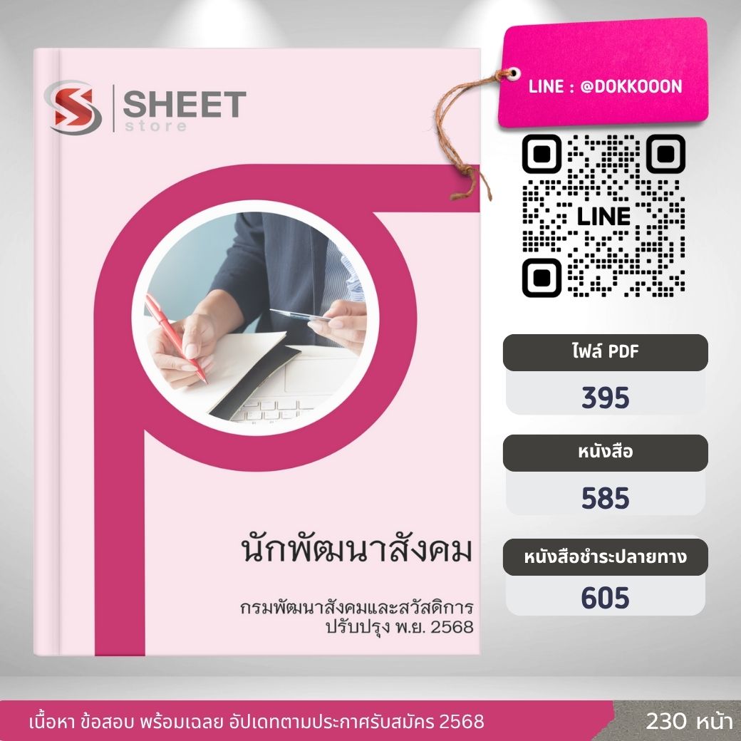 แนวข้อสอบ นักพัฒนาสังคม กรมพัฒนาสังคมและสวัสดิการ ฉบับปรับปรุง พฤศจิกายน 2568 ครบจบในเล่มเดียว สรุปเนื้อหาตัวอย่างข้อสอบพร้อมเฉลย กระชับตรงประเด็น อ่านเข้าใจง่าย