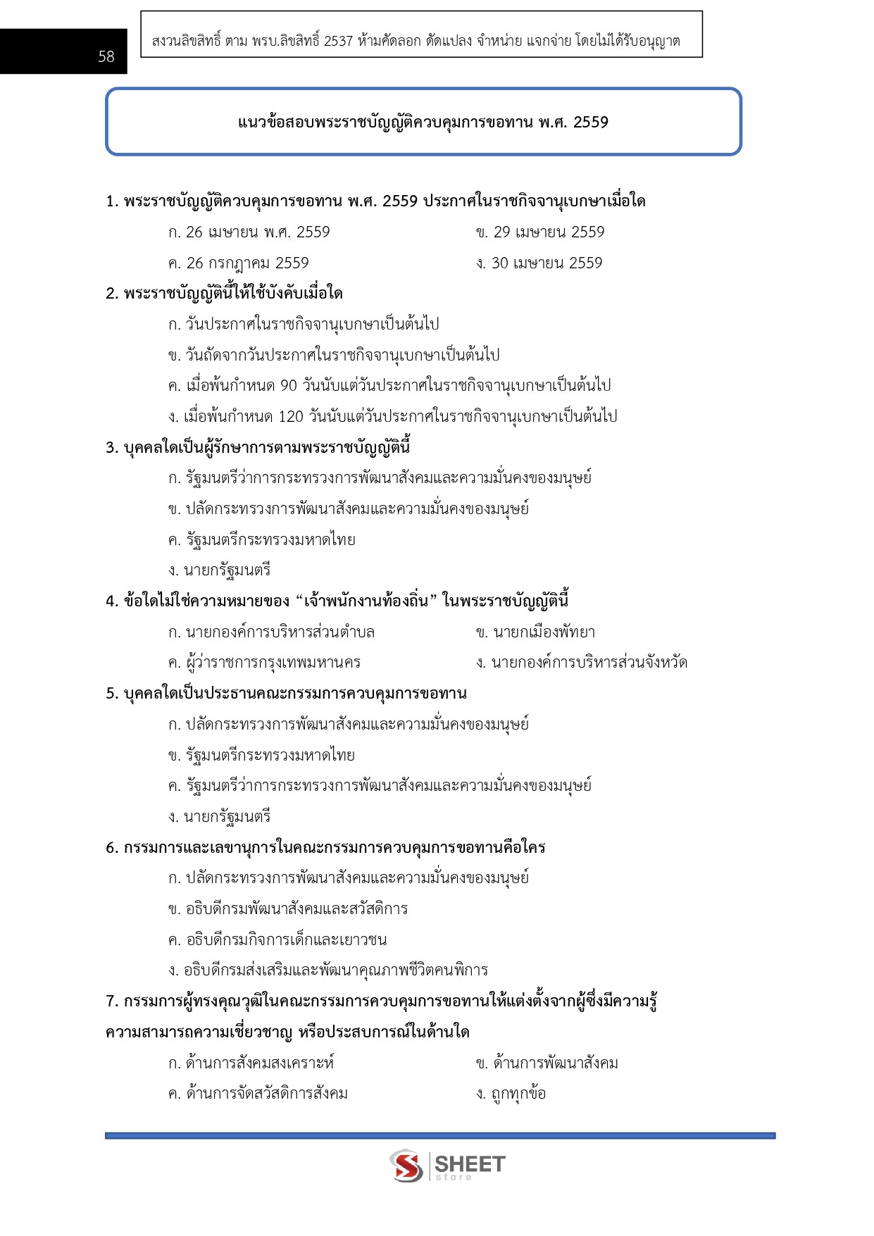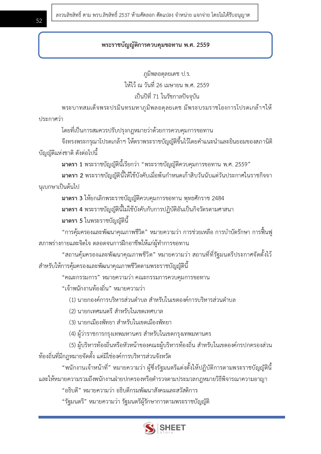 – แนวข้อสอบพระราชบัญญัติการควบคุมขอทาน พ.ศ. 2559