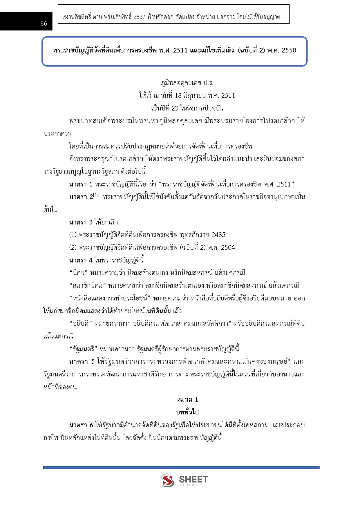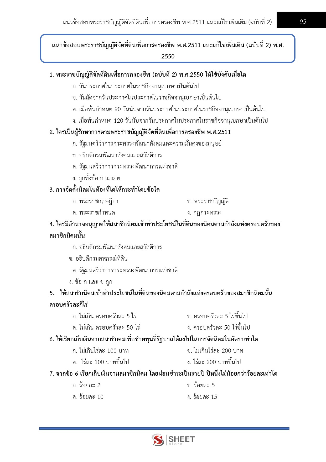– แนวข้อสอบพระราชบัญญัติจัดที่ดินเพื่อการครองชีพ พ.ศ. 2511 และแก้ไขเพิ่มเติม (ฉบับที่ 2) พ.ศ. 2550