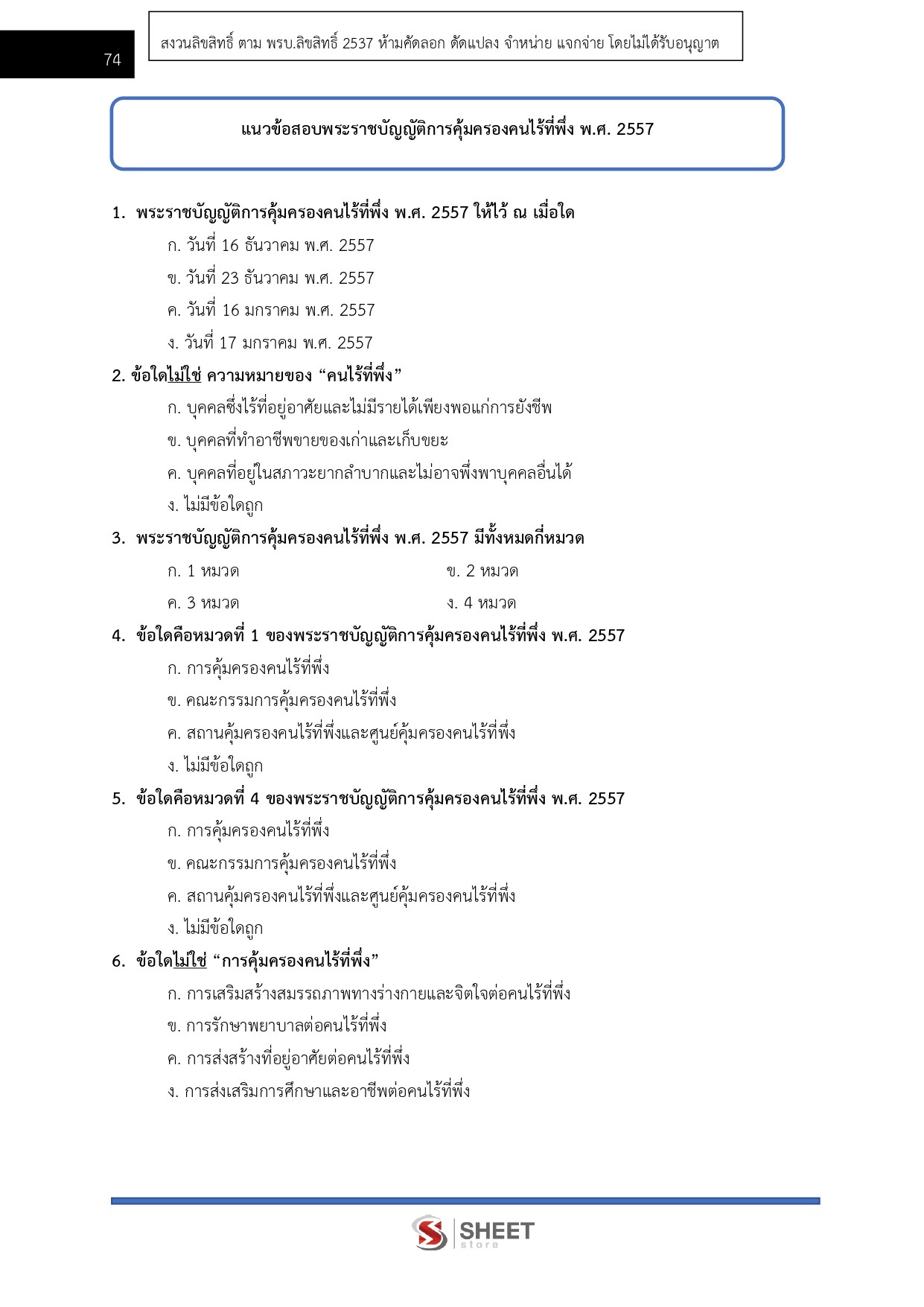 – แนวข้อสอบพระราชบัญญัติการคุ้มครองคนไร้ที่พึ่ง พ.ศ. 2557