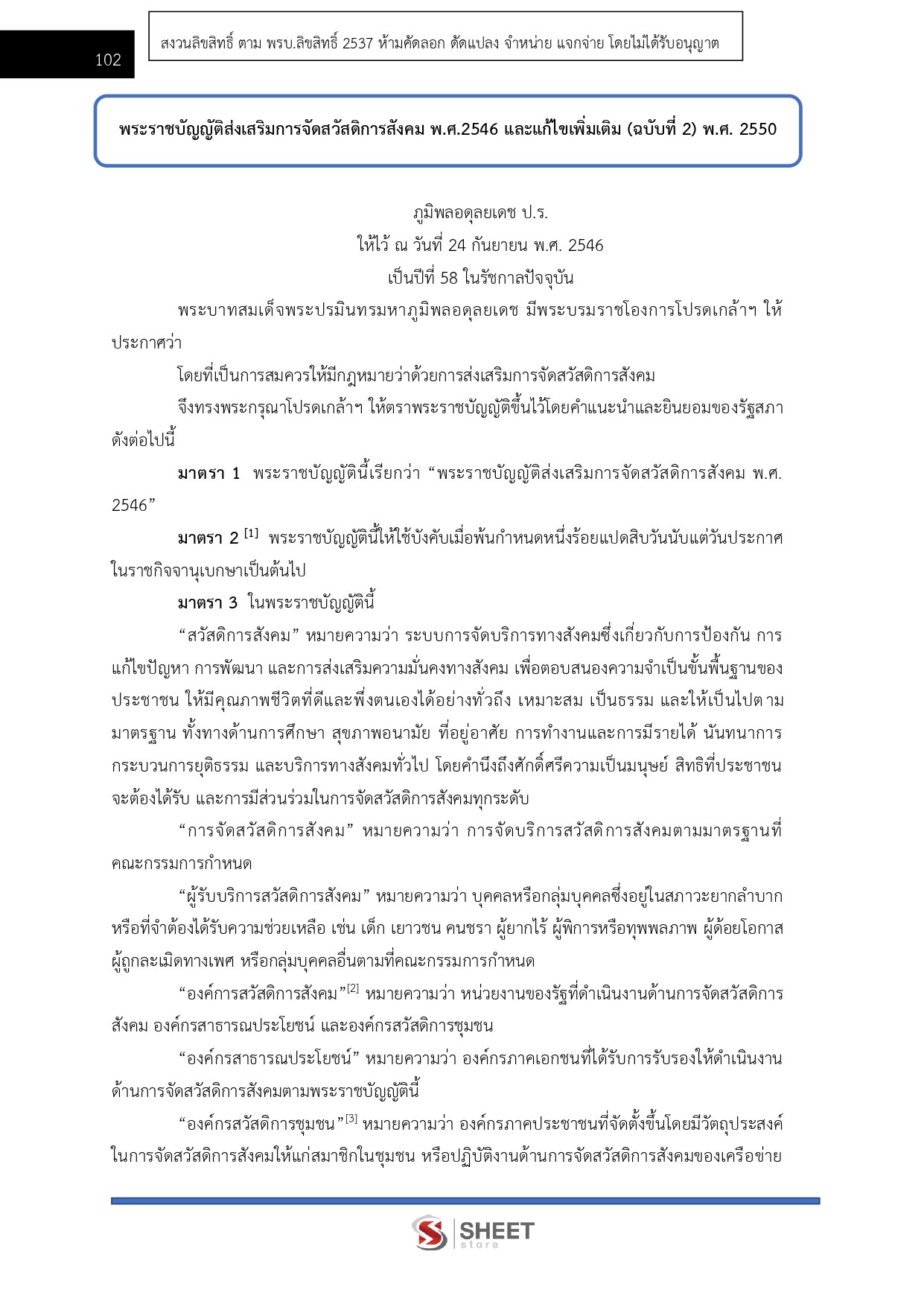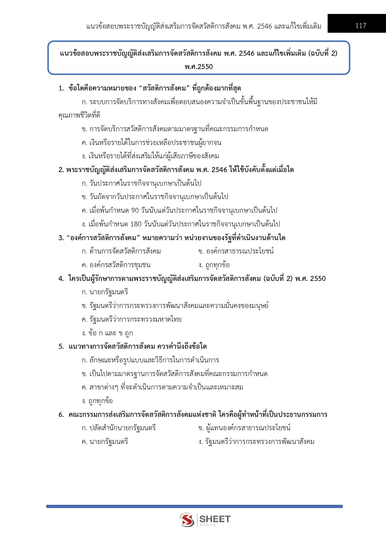 – แนวข้อสอบพระราชบัญญัติส่งเสริมการจัดสวัสดิการสังคม พ.ศ. 2546 และแก้ไขเพิ่มเติม (ฉบับที่ 2) พ.ศ. 2550