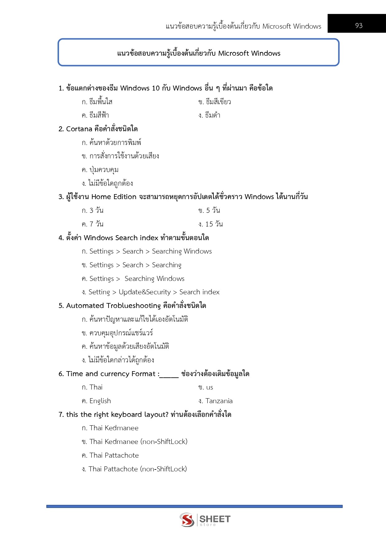 – แนวข้อสอบการใช้คอมพิวเตอร์ Microsoft Windows