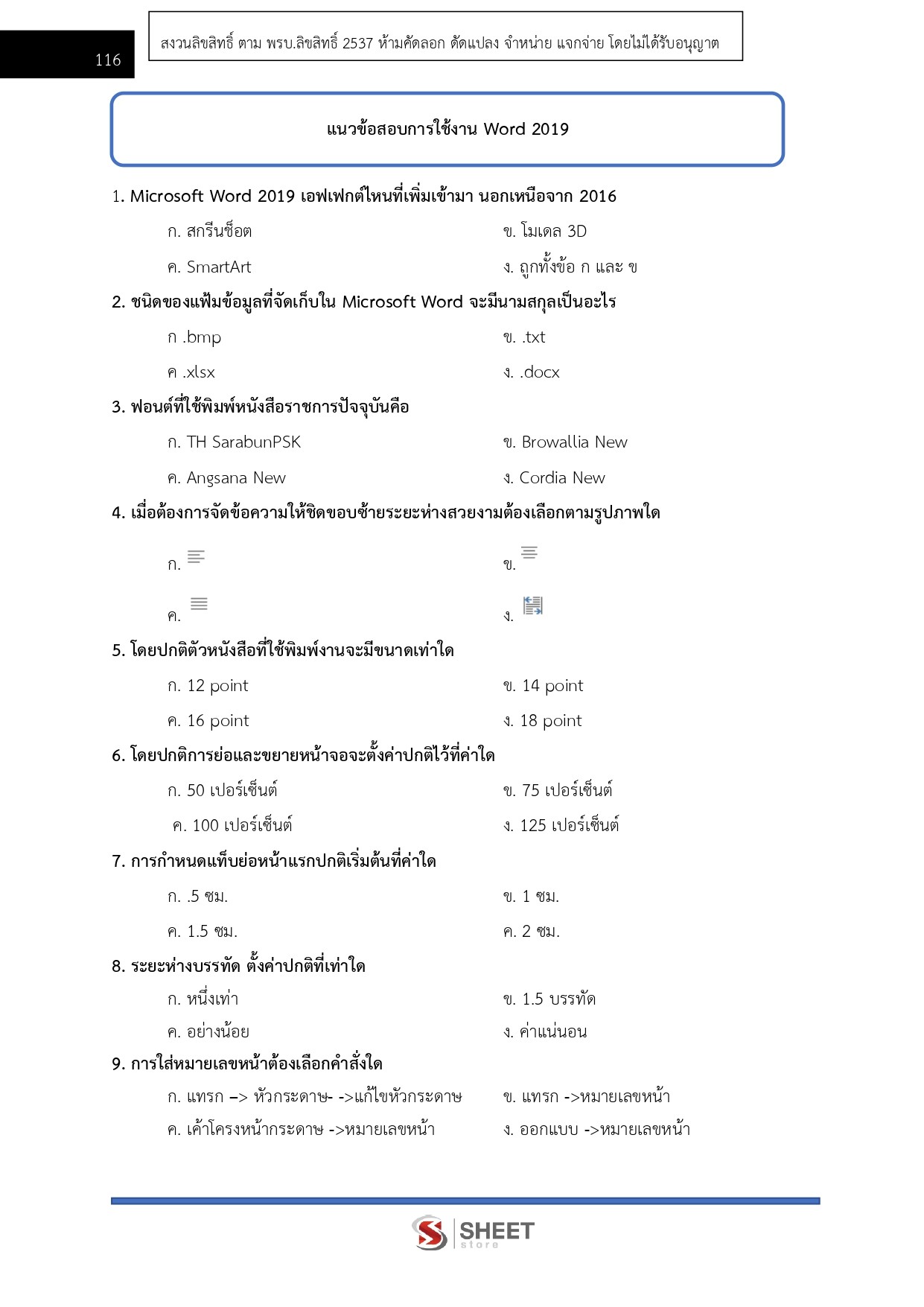 – แนวข้อสอบการใช้คอมพิวเตอร์ โปรแกรม Microsoft Office