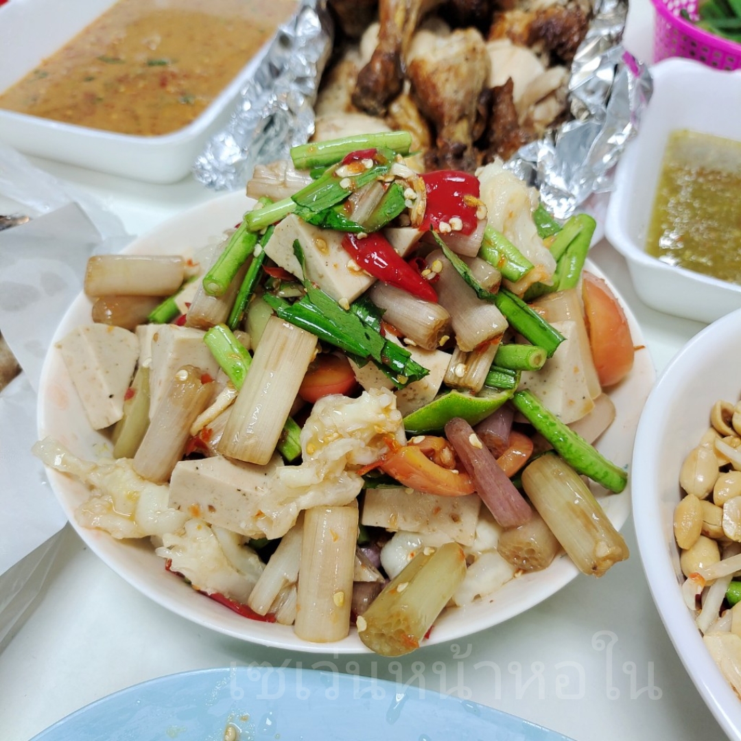 ตำปลาร้าสายบัว ใส่ตีนไก่และไก่ยอ ครับ