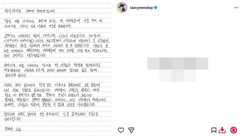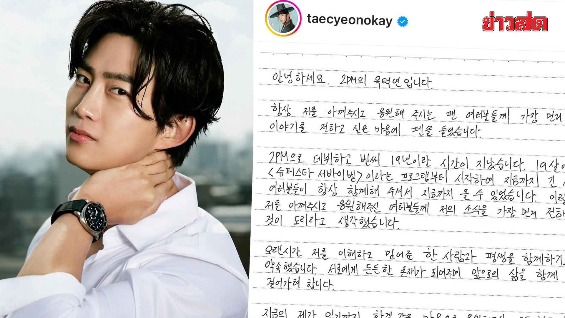 แทคยอน 2PM ประกาศแต่งงาน ผ่านจดหมายที่เขียนด้วยลายมือตัวเอง