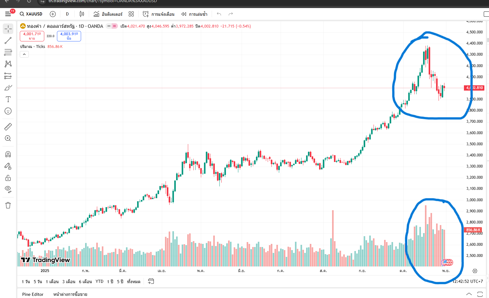 vol ขึ้นสูงมาหลายวัน  พักหลังเป็นแท่งแดงมากกว่าเขียว  อาการเช่นนี้ขึ้นต่อค่อนข้างยาก  โอกาสเป็นไปได้ที่จะไซด์เวย์ออกข้าง  และทดสอบโลว์เดิมบริเวณ 3900 อีกรอบ หรือขึ้นไปทดสอบ 4150 รอบนี้แท่งแดงควรลดขนาดลง และไม่หลุดโลว์ ก็น่าจะเป็นโอกาสซื้อ  แต่ถ้าหลุดหาแนวรับใหม่  .....