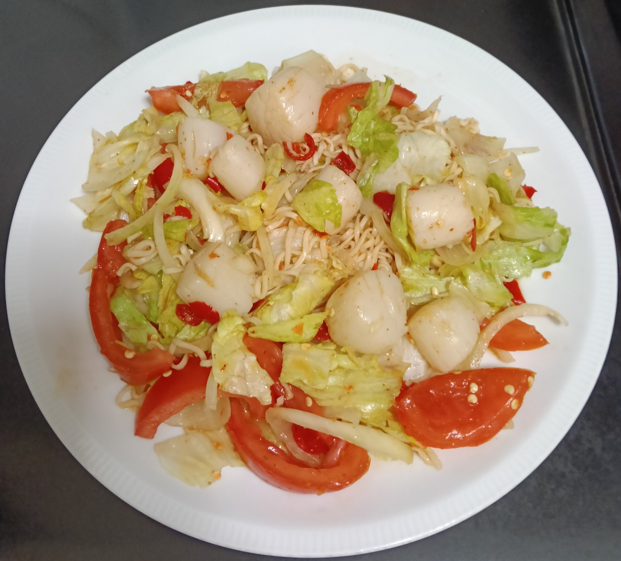 "ยำมาม่าหอยเชลล์ "