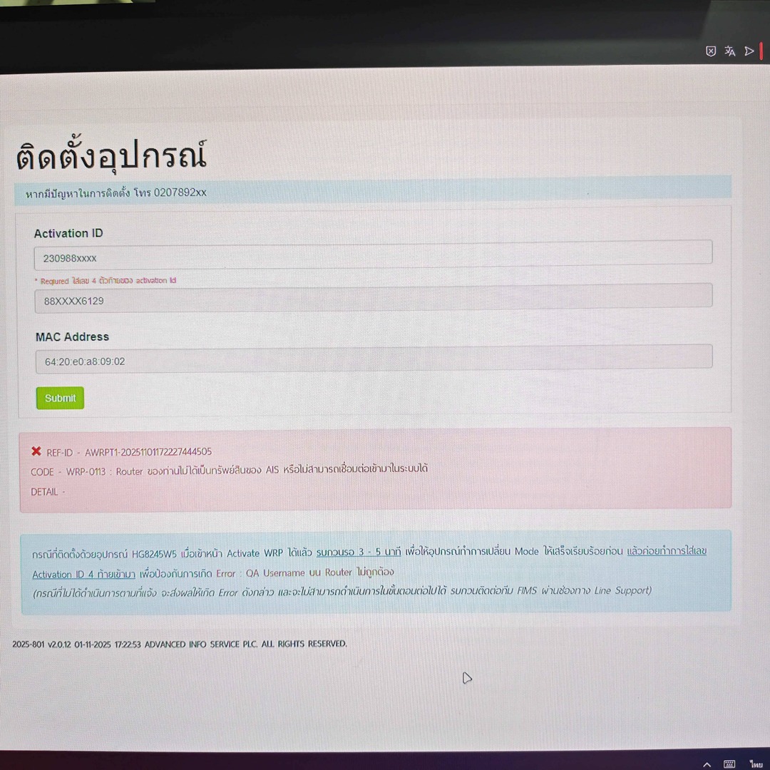 AIS Fiber ใช้ไม่ได้ ขึ้นให้ใส่ Activation ID