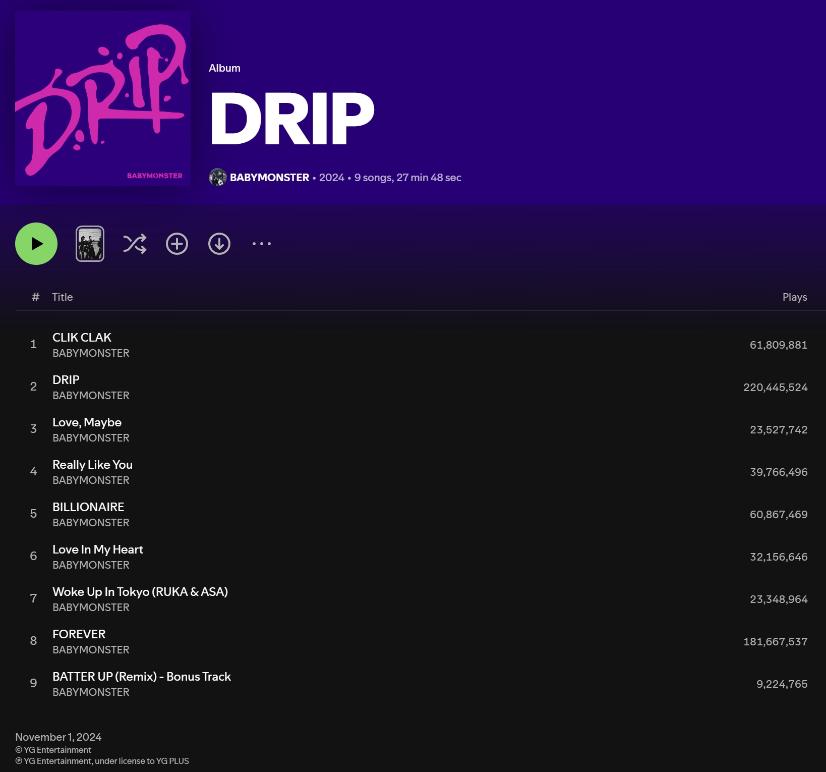 แล้วจากนั้นวันที่ 1 พย. 2024 วงก็ Comeback กลับมาพร้อม Full Album โดยมีเพลง Title อย่าง Drip เป็นเพลงเปิดตัวที่ทรงพลังมากๆ เช่นกัน แล้วก็ได้กระแสตอบรับอย่างดี แม้ว่าในส่วนของชาร์ตเกาหลีอาจจะต้องใช้เวลาไต่บ้างสักหน่อย แต่สุดท้ายก็ทำอันดับได้สูงสุดที่อันดับ 11 เลย