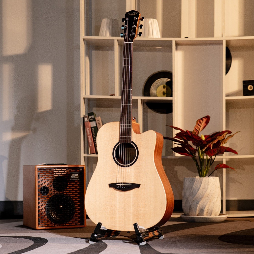 🎸🎶 กีต้าร์โปร่งไฟฟ้า Veelah V1-DCE เสียงอบอุ่นจากไม้แท้ในราคาคุ้มค่า 🔥✨