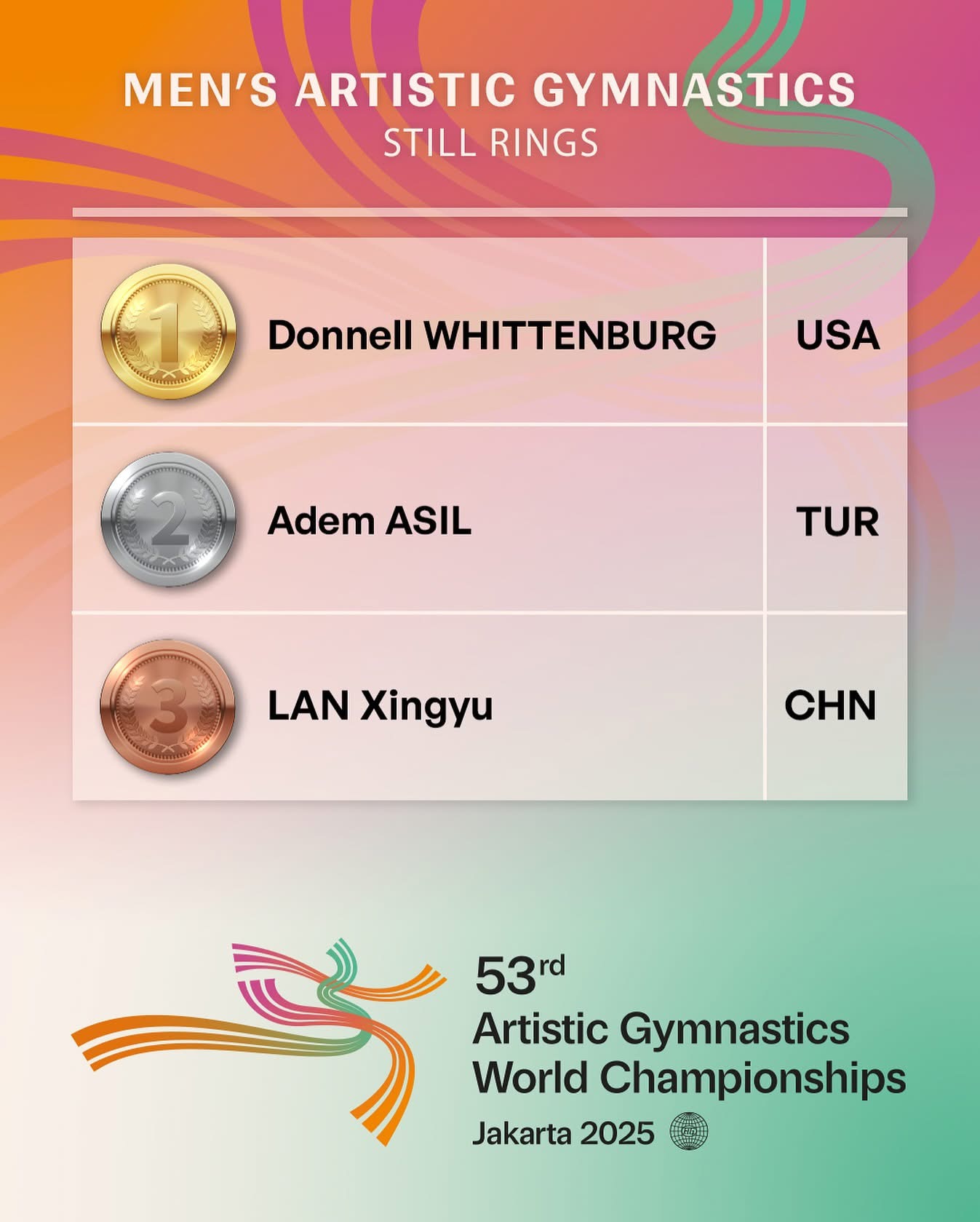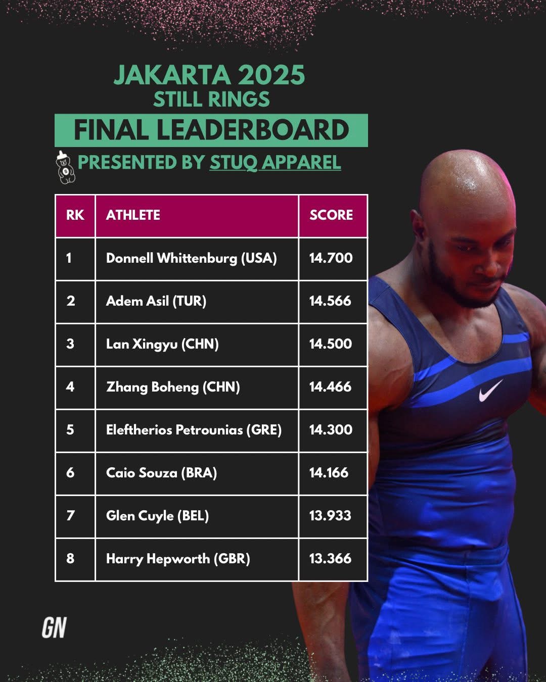 รายการ 53rd FIG Artistic Gymnastics World Championships 2025 หรือการแข่งขันยิมนาสติกสากลชิงแชมป์โลก 2025 ณ กรุงจากาตาร์ ประเทศอินโดนีเซีย ระหว่างวันที่ 19-25 ตุลาคม 2568 ที่ผ่านมานั้น ผลปรากฏว่า มีนักกีฬายิมนาสติกชายชาวสหรัฐอเมริกาสามารถคว้าเหรียญทองในอุปกรณ์ประเภทห่วงได้ โดยเขามีชื่อว่า Donnell Whittenburg เป็นนักกีฬายิมนาสติกชายผิวสีหุ่นล่ำบึ้กของสหรัฐอเมริกา 😅