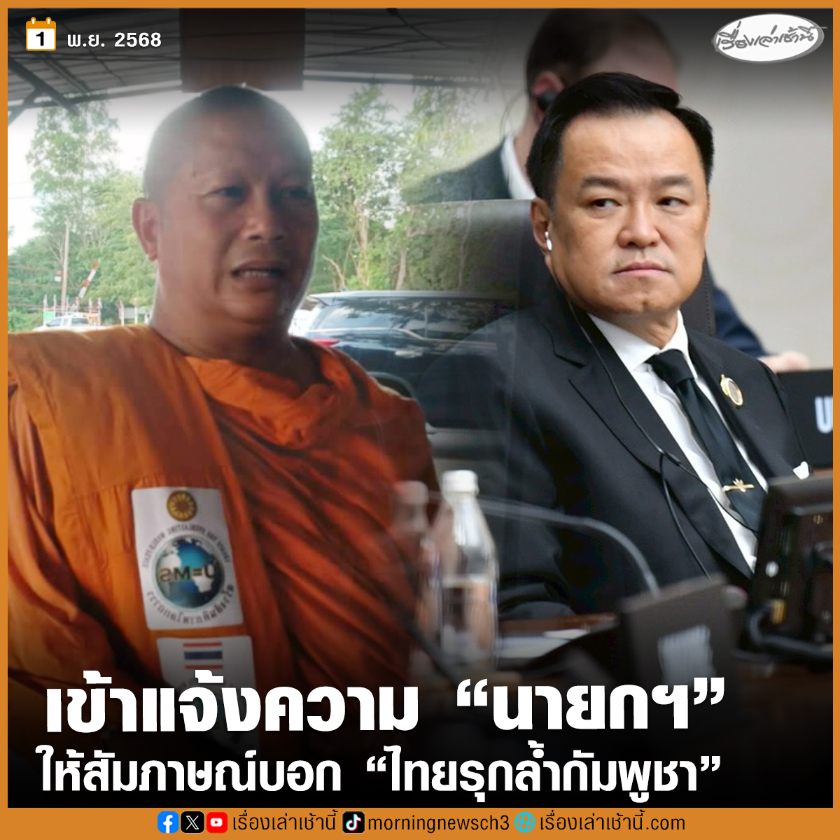 พระเข้าแจ้งความนายกฯ ปมให้สัมภาษณ์บอก "ไทยรุกล้ำอธิปไตยกัมพูชา" ซ้ำลงนามสันติภาพ “ไทย-กัมพูชา” เชื่อเป็นเหตุสุ่มเสี่ยงต่อการเสียดินแดน