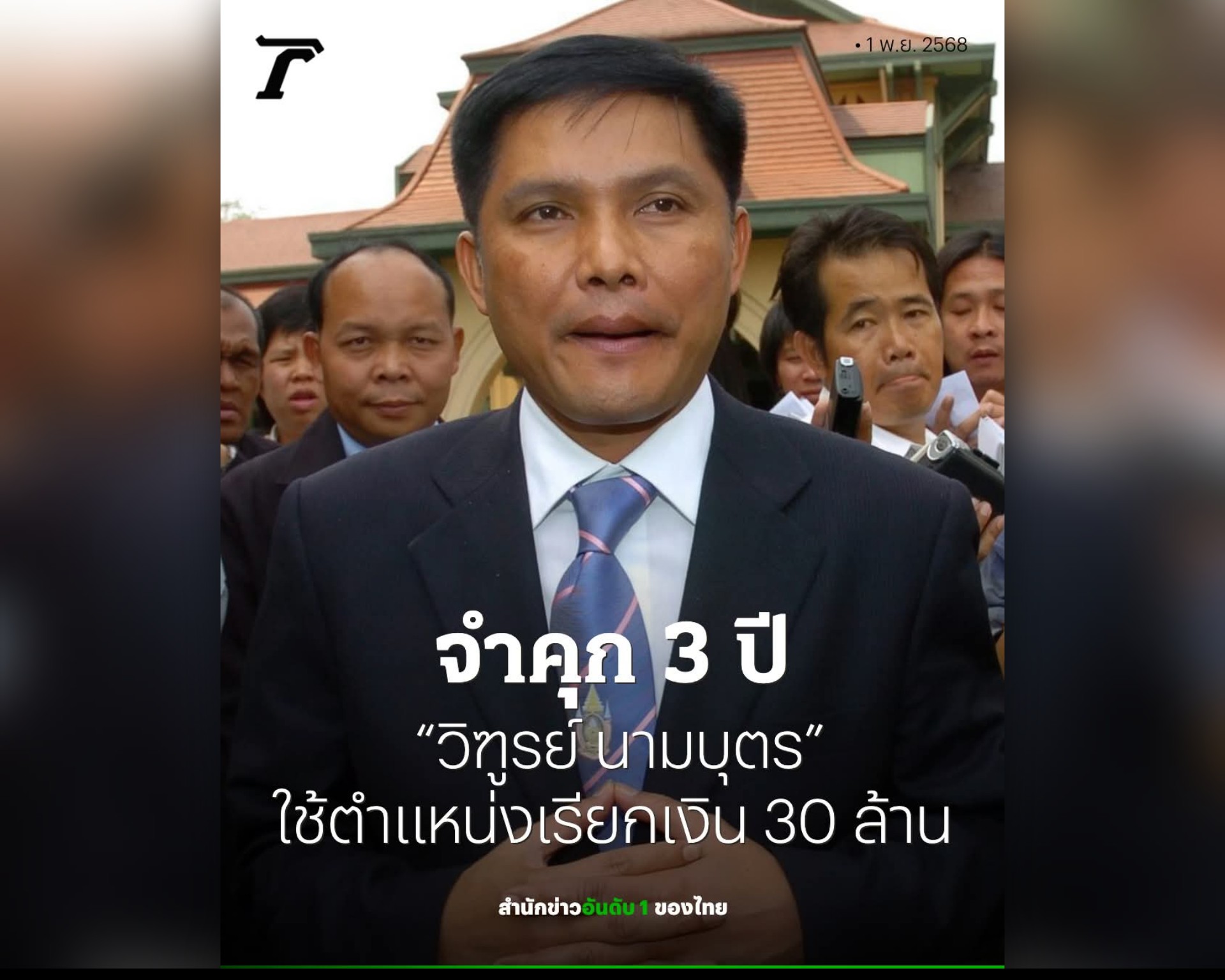 🧑⚖️ ศาลสั่งจำคุก “วิฑูรย์ นามบุตร” 3 ปี ปมใช้ตำแหน่งเรียกรับเงิน 30 ล้าน แลกรับงานรัฐ