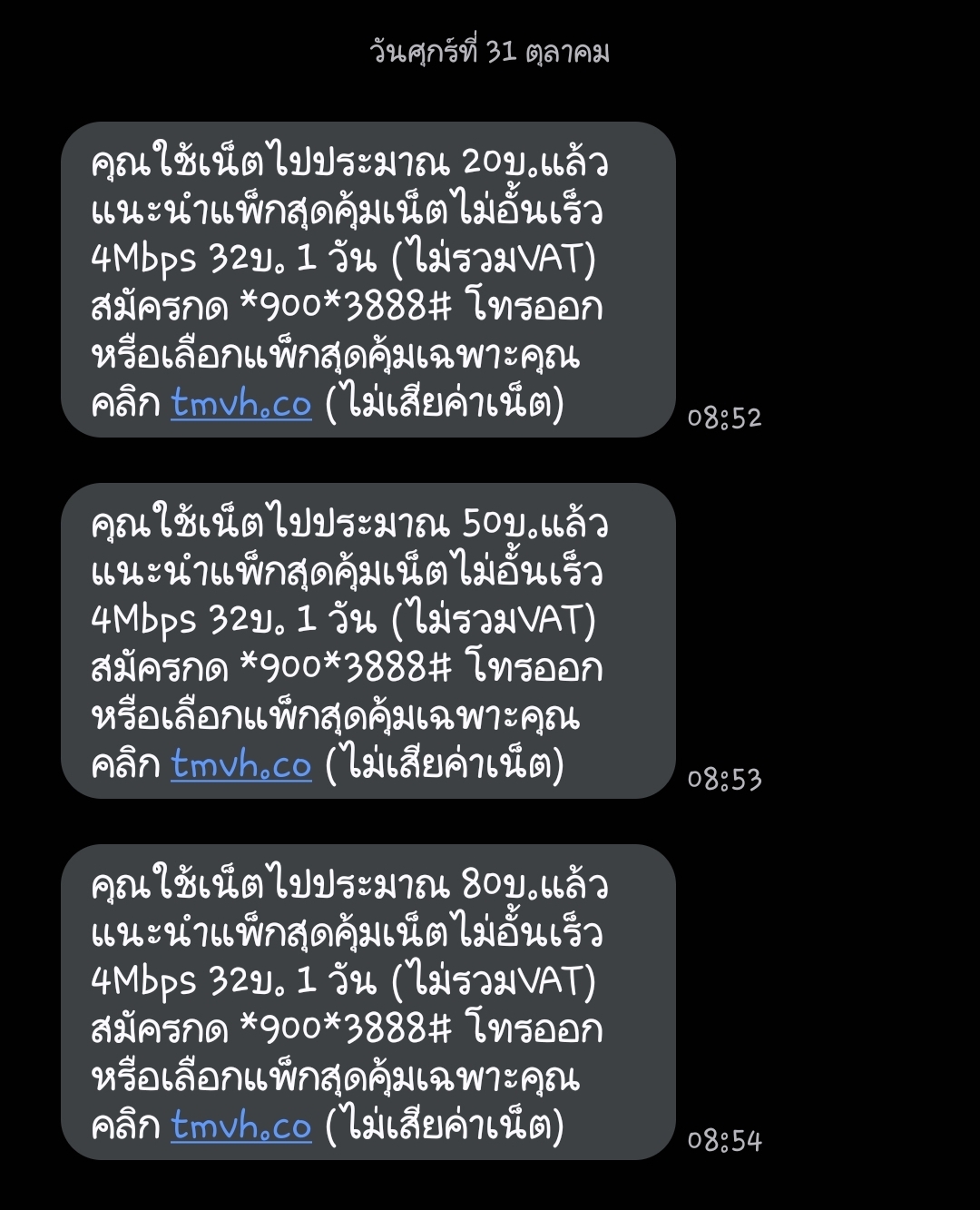 ข้อความที่3ก็เด้งมาตอน 8.54น.ว่า เราใช้เน็ตไปแล้ว 80บาท