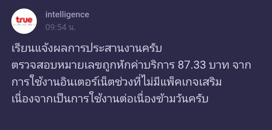 ทักหาtrue intelligence ได้คำตอบมาแบบนี้ค่ะ และไม่มีรายละเอียดอะไรแจ้งกลับมาเลย