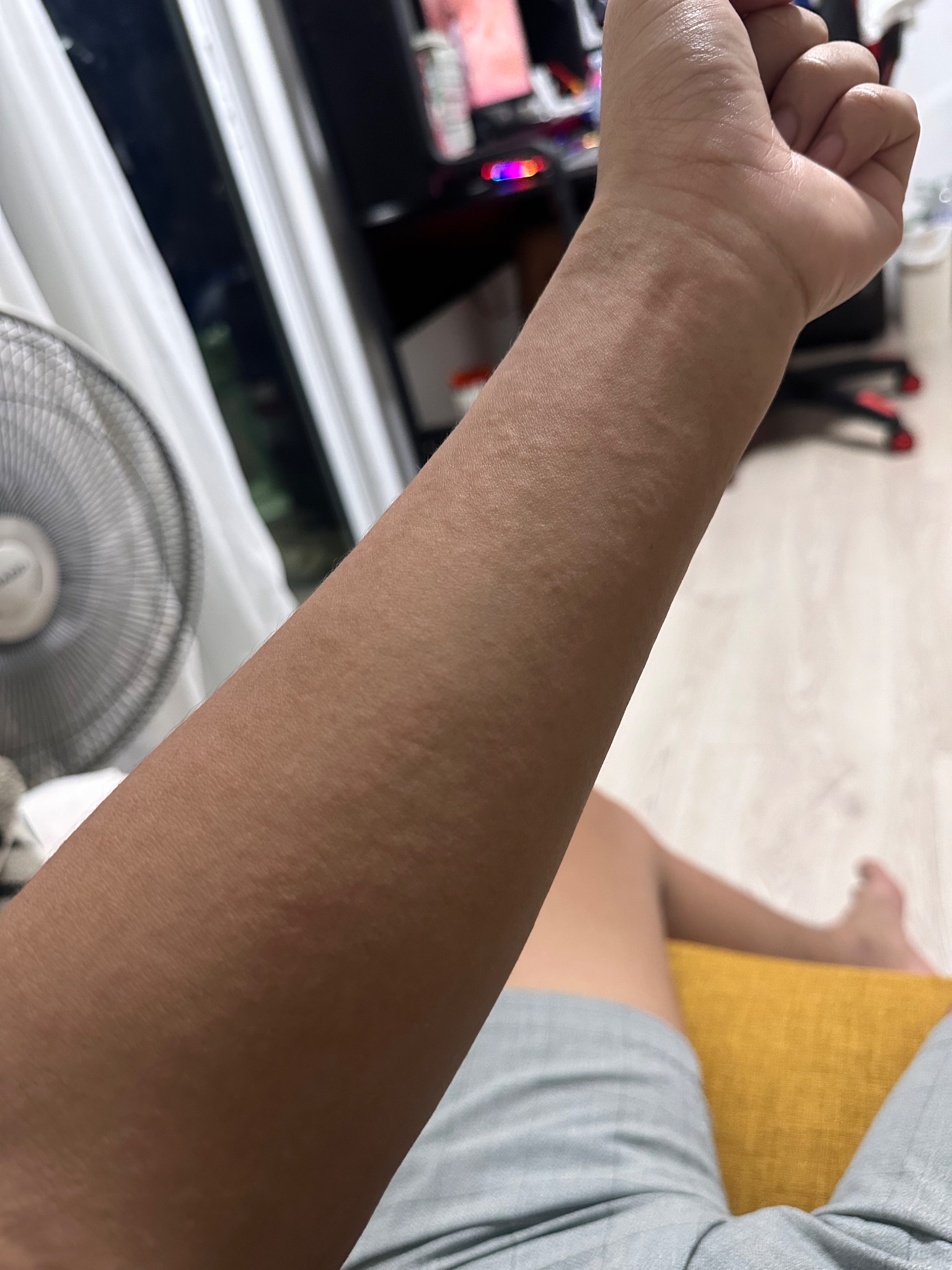 เป็นผื่นแบบนี้ค่ะ นูนๆขึ้นมาแต่ไม่คันไม่รู้สึกเจ็บไม่แดง แต่ดูผิวไม่เรียบ มันไม่หายไปสักทีมันคืออะไรคะ