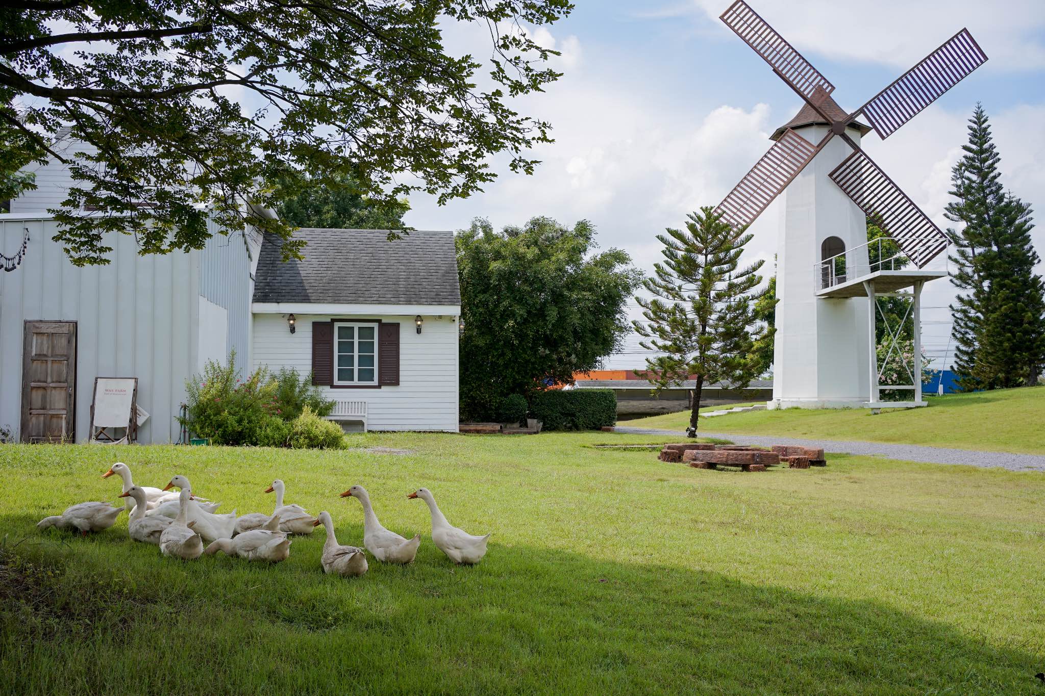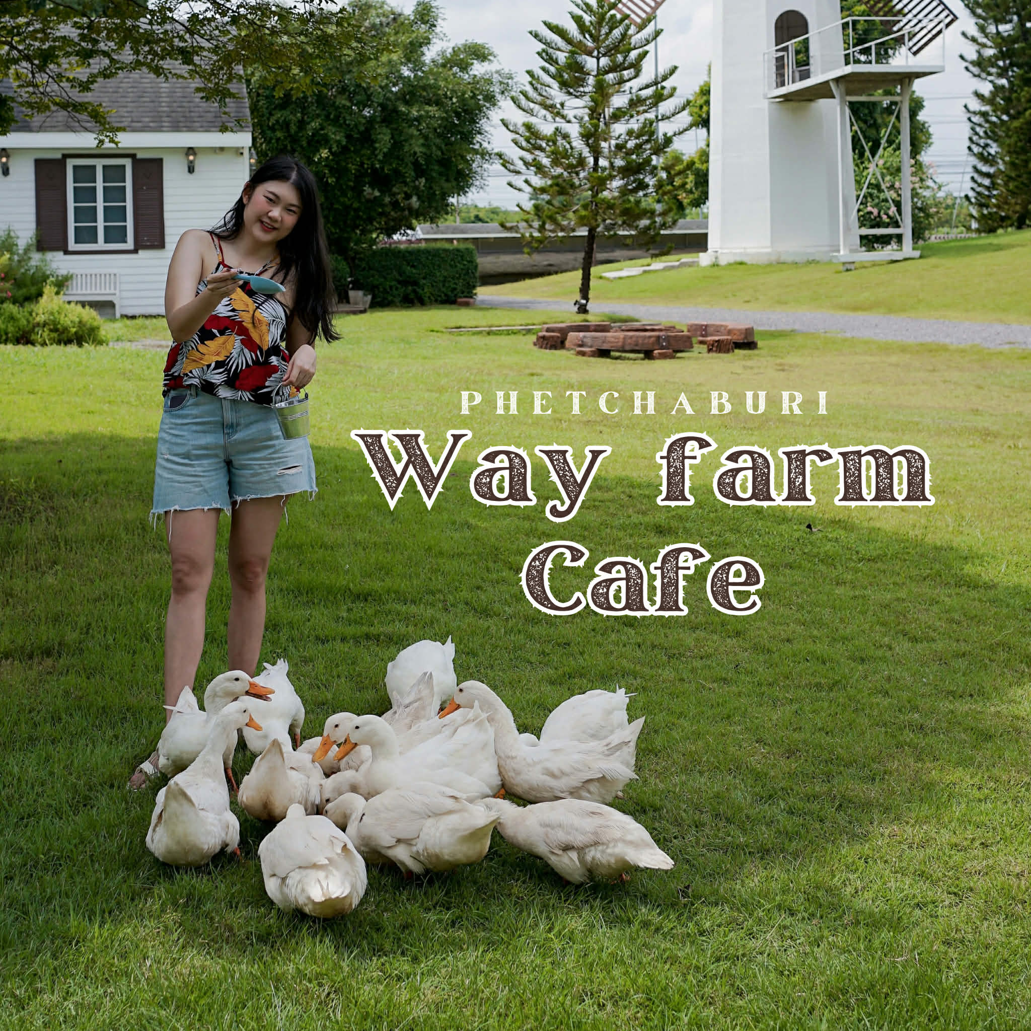 Way Farm Cafe & Restaurant คาเฟ่และร้านอาหารสไตล์ฟาร์มยุโรป มีที่นั่งทั้งโซน Indoor-Outdoor ภายในฟาร์มตกแต่งด้วยบ้านกับโรงนาสีขาวและกังหันขนาดใหญ่ ให้ฟีลเหมือนอยู่ต่างประเทศเลย แถมยังมีเจ้าเป็ดสุดกวนเดินเล่นไปมาในสนามหญ้า ใครสายถ่ายรูปแนะนำเลยค่า มุมถ่ายรูปสวยๆเพียบ 📸