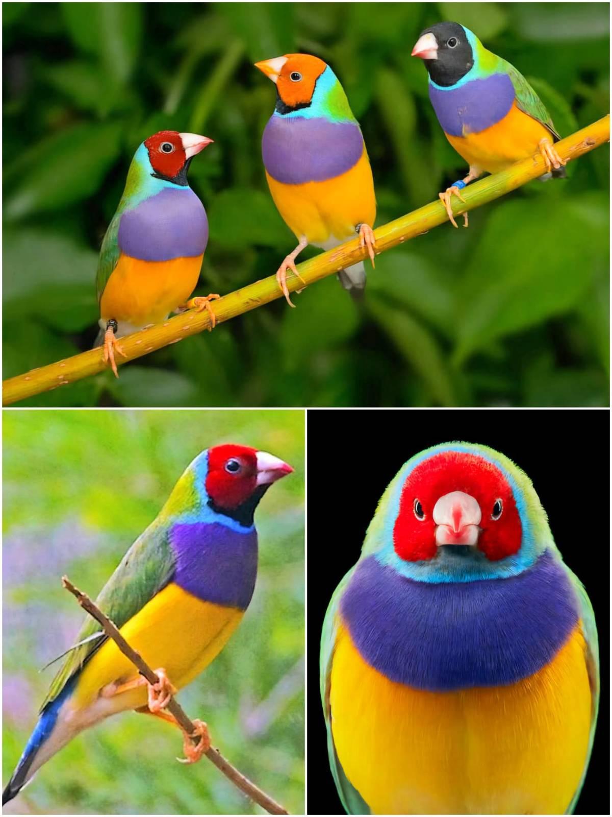 "นกฟินช์เจ็ดสี" หรือ "นกสายรุ้ง" มีขนหลากสีที่สดใสและตัดกันอย่างชัดเจนบนตัว