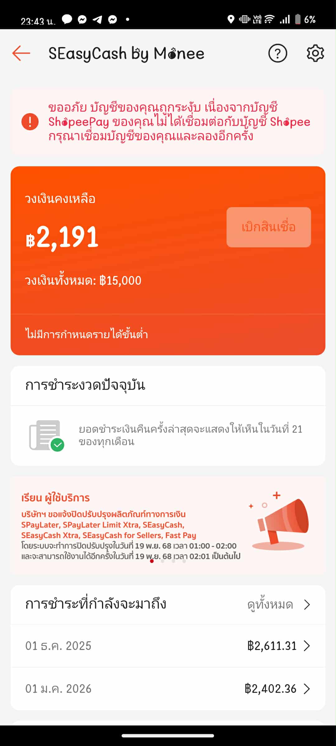 สวัสดีค่ะขออนุญาตสอบถามเพื่อนๆที่ใช้งานเเอพสีส้มหน่อยนะคะว่าถ้ากรณีเราชำระเงินผ่านShopeelater เเล้วต้องกรอกรหัสเเล้วสเเกนใบหน้าเเต่สเเกนยังไงก็ไม่ผ่านจนต้องโดนระงับจ่ายไม่ได้ เราสามารถเเก้ไขยังไงได้บ้