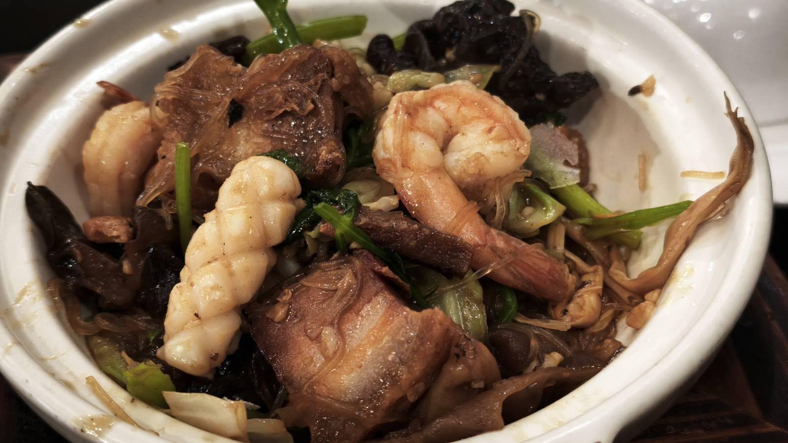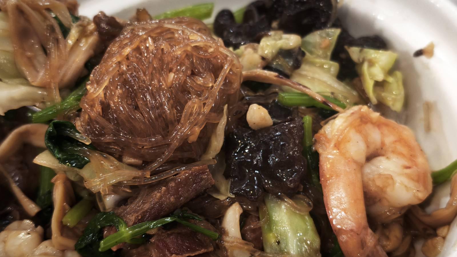 มีหมูกรอบชื้นใหญ่ กุ้ง ปลาหมึก ผัก และวุ้นเส้นผัดมาในซอยสไตล์จีน รสชาติอร่อย ดี แต่ผักน้อยไปหน่อย วุ้นเส้นให้มาเยอะจนกินอิ่ม โดยไม่ได้ต้องทานข้าวกันเลยทีเดียว สำหรับเรา เราคงไม่สั่งอีก เพราะรู้สึกเหมือนอาหารจานเดียวมากกว่ากับข้าว