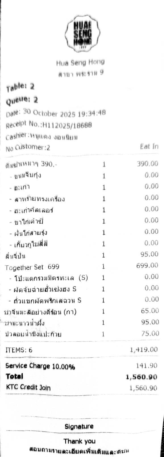 จบแบบเบาๆ ไป มื้อนี้ 1,560 บาท