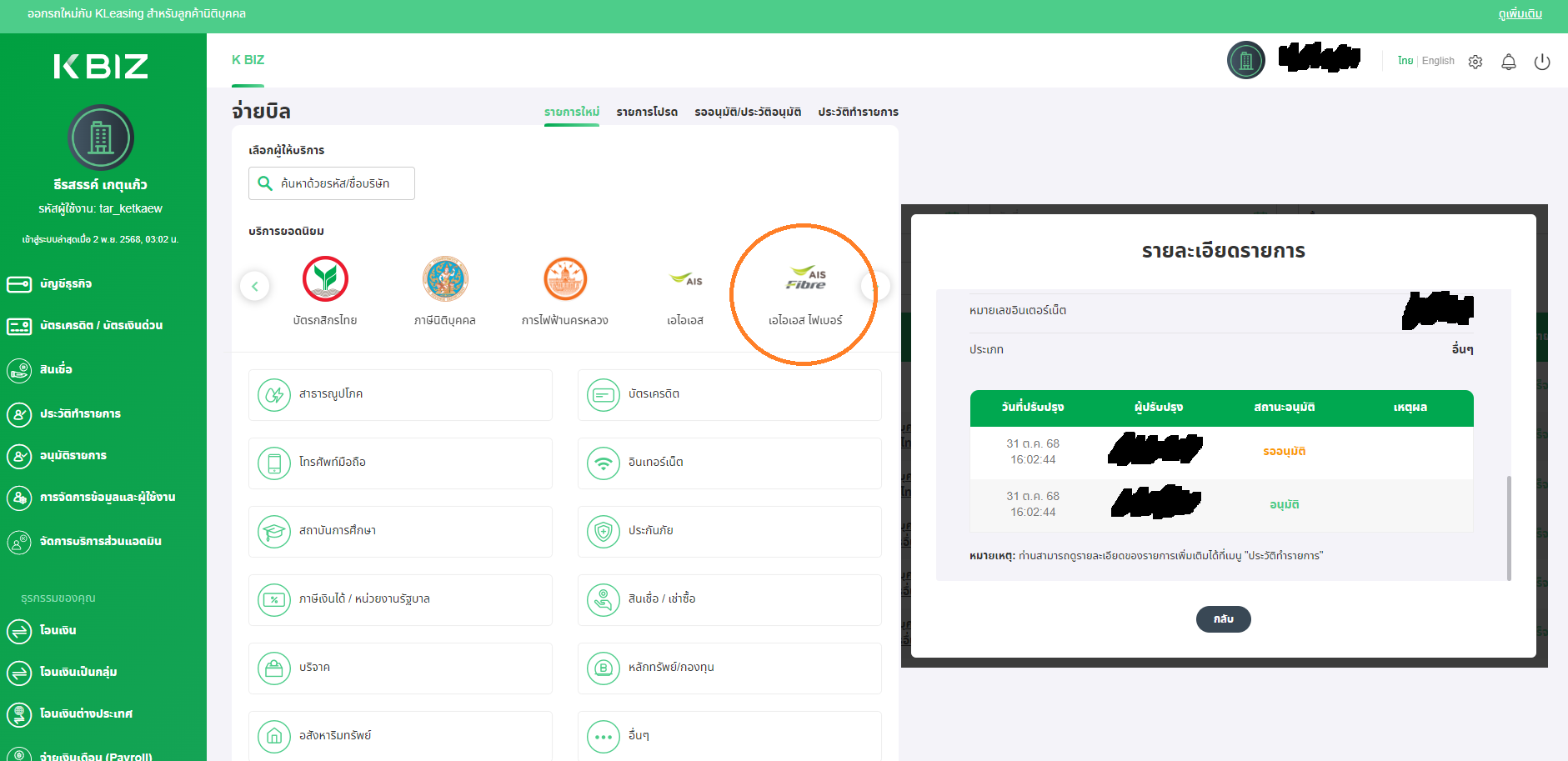 ใช้เว็บของ กสิกร จ่ายค่า Ais Fiber ตัดยอดเงินในบัญชีไปแล้ว แต่ยอดไปไม่ถึง Ais ทำให้โดนระงับสัญญาณ