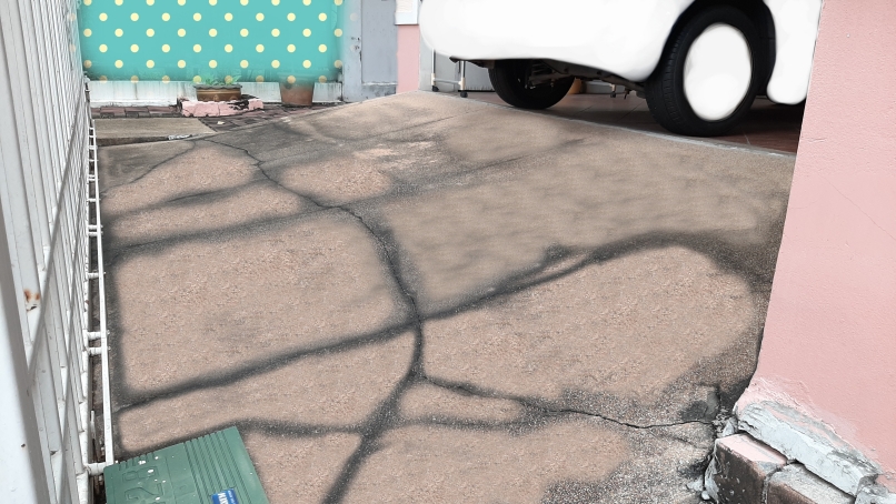 ทางลาดขึ้นจอดรถทรุดแตกร้าว