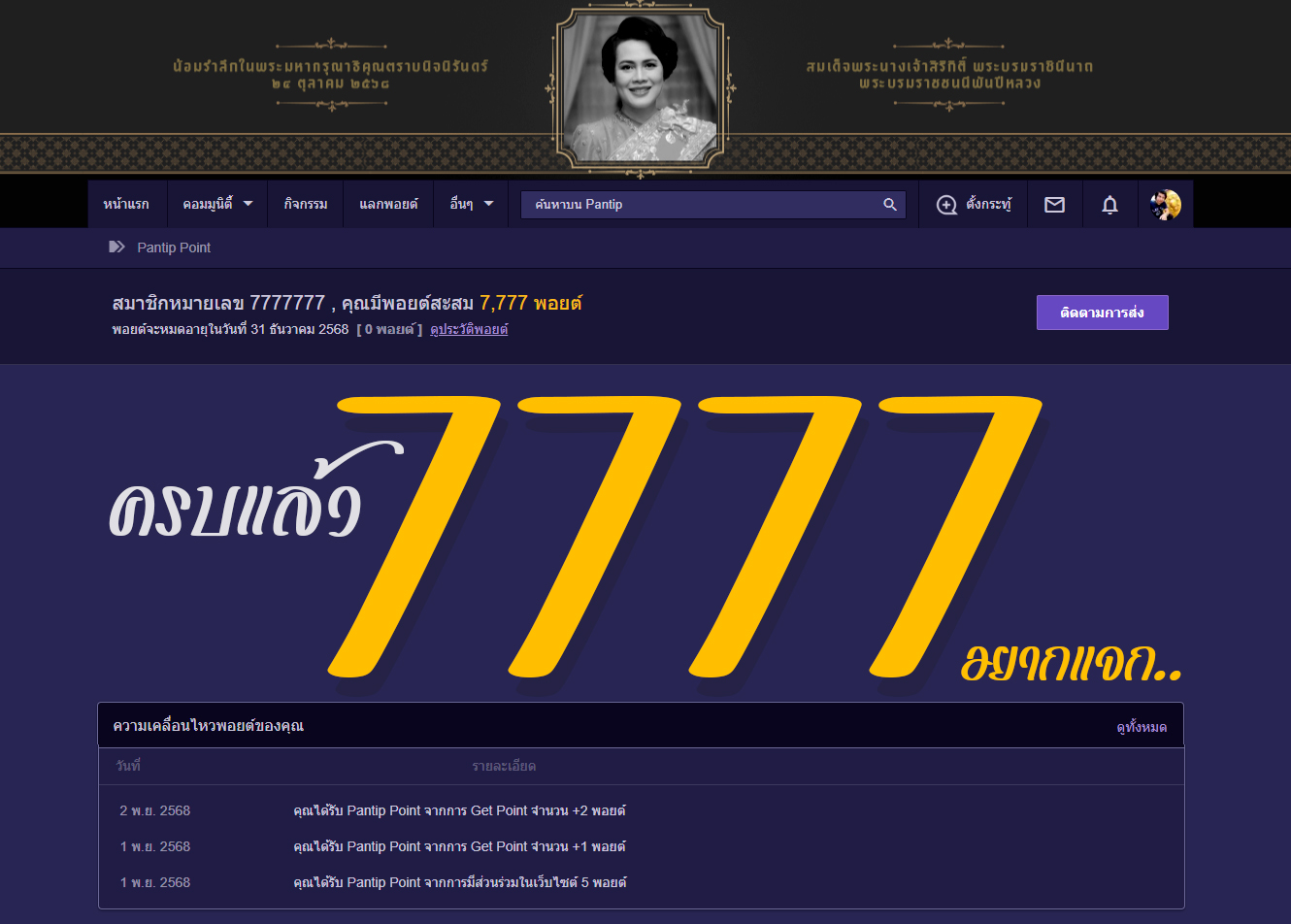 ในที่สุดเราก็สะสมพอยต์ถึง 7777 พอยต์จนได้