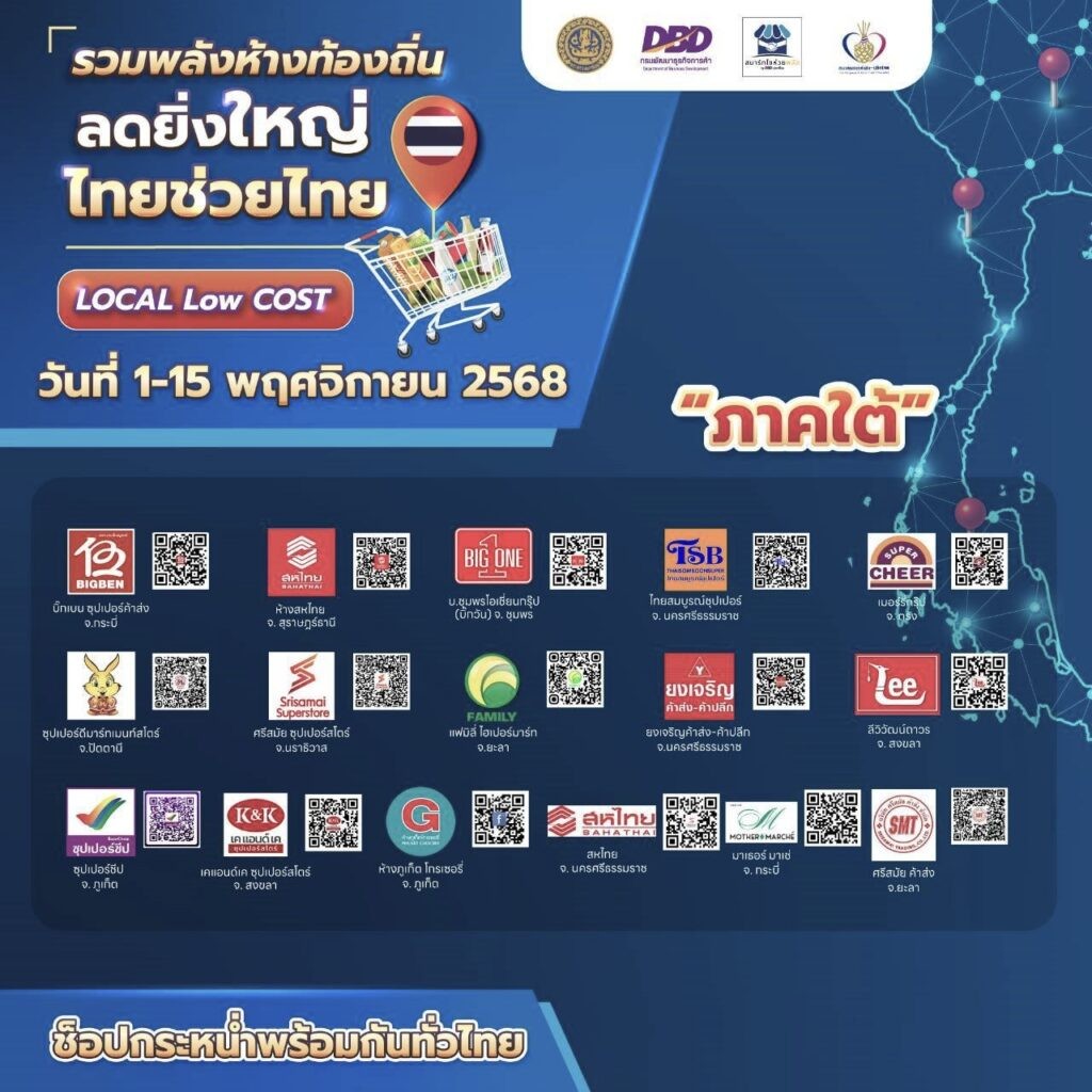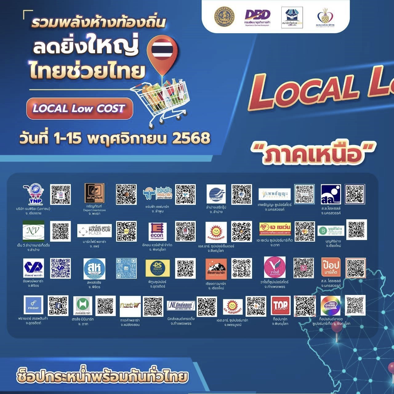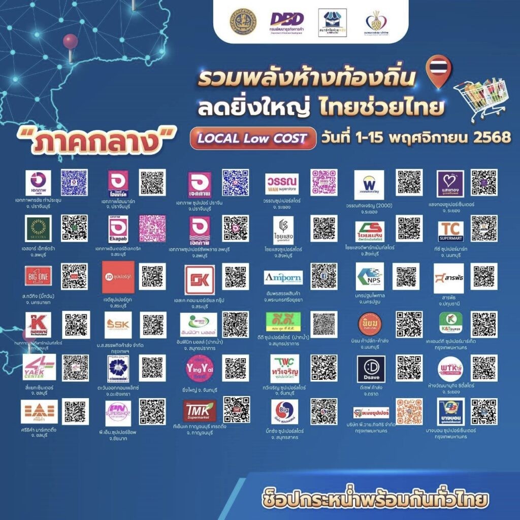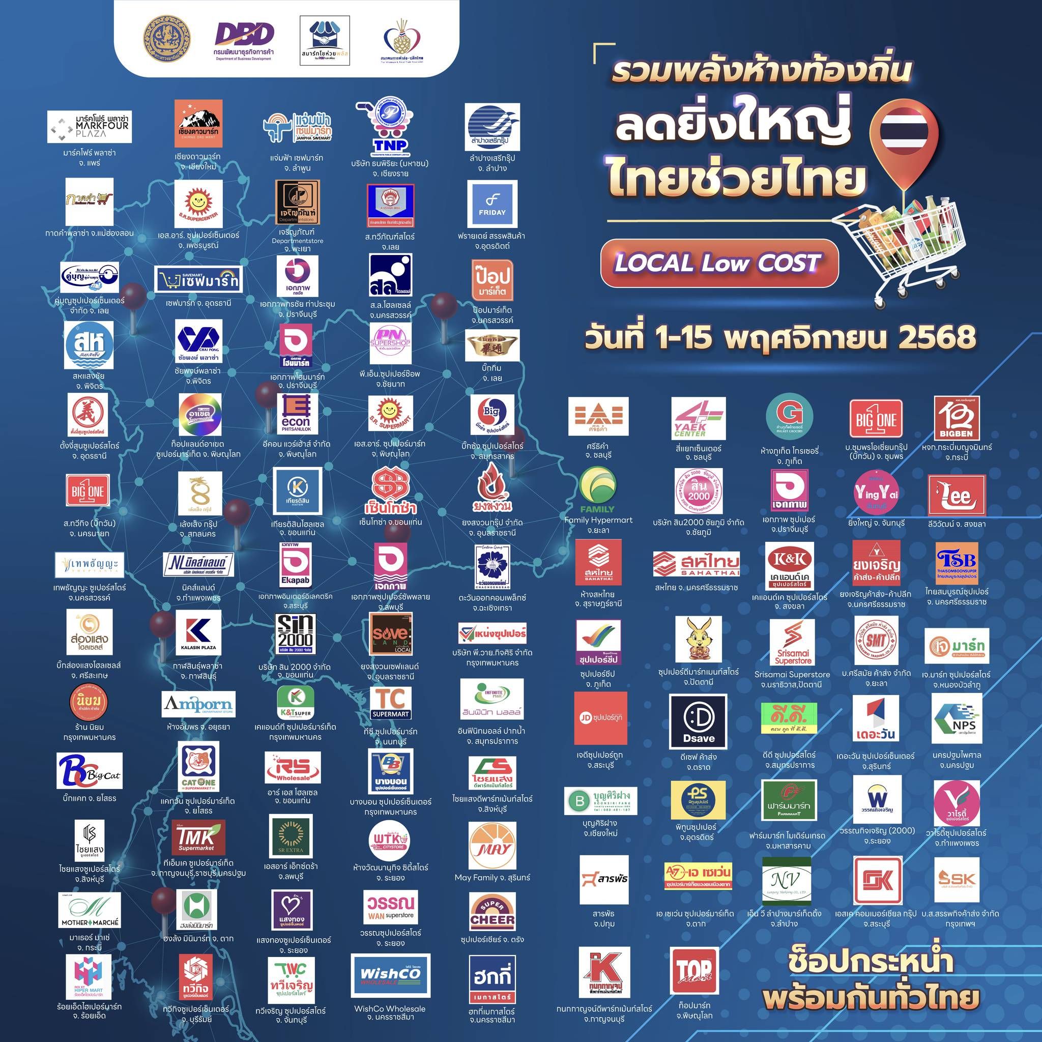 กรมพัฒนาธุรกิจการค้า เปิดมหกรรมลดราคาสินค้าครั้งใหญ่ ‘รวมพลังห้างท้องถิ่น ลดยิ่งใหญ่ ไทยช่วยไทย (LOCAL Low COST)’ เริ่มแล้ววันนี้ – 15 พฤศจิกายน 2568 เปิดโอกาสให้ประชาชนใช้สิทธิบัตรสวัสดิการแห่งรัฐ โครงการคนละครึ่งพลัส และประชาชนทั่วไป ซื้อสินค้าราคาพิเศษลดสูงสุดถึง 60% ได้ที่ห้างค้าส่ง-ค้าปลีกท้องถิ่นทั่วประเทศ 101 แห่ง 800 สาขาทั่วประเทศ