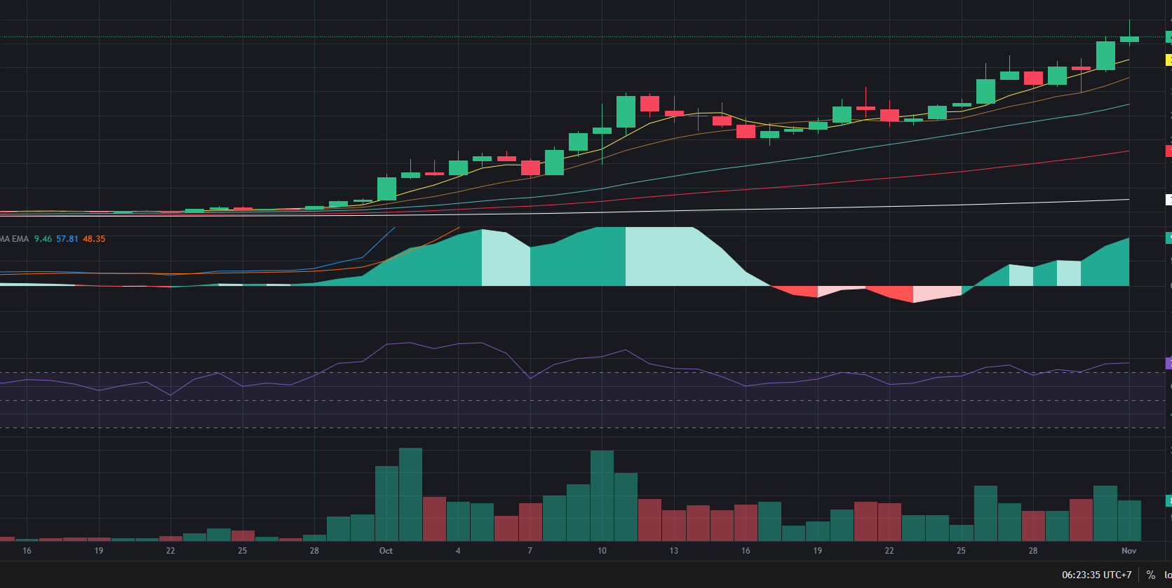 ไม่ว่าจะเทรดอะไรก็แล้วแต่  จะต้องมีการตัดสินใจ  ให้ดูเส้น 5 10 25 50 75 200  macd rsi vol  ประกอบด้วย
