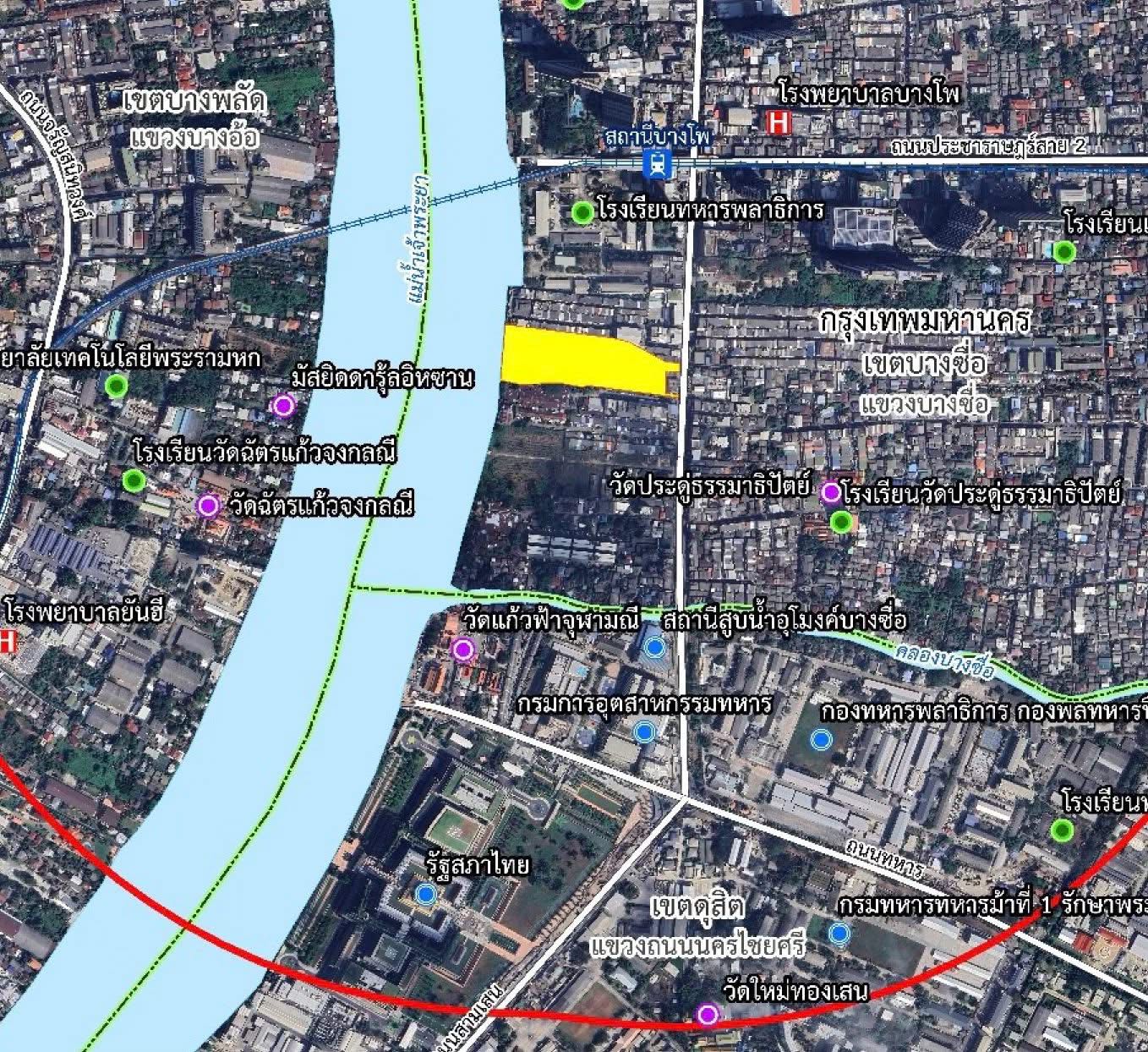 - ที่ดินบริจาค!! 12 ไร่ 2 งาน ริมแม่น้ำเจ้าพระยา ติดถนนประชาราษฎร์สาย 1 (ใกล้ MRT บางโพมากก)