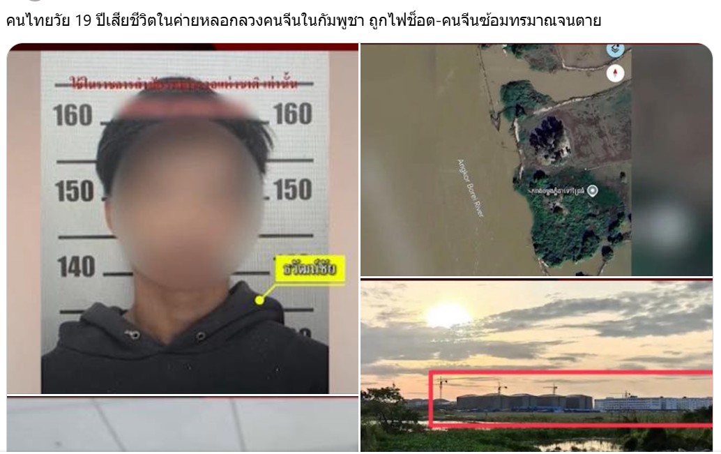 เยาวชนไทยวัย 19 ปีเสียชีวิตในค่ายหลอกลวงคนจีนในกัมพูชา ถูกไฟช็อต-คนจีนซ้อมทรมาณจนตาย