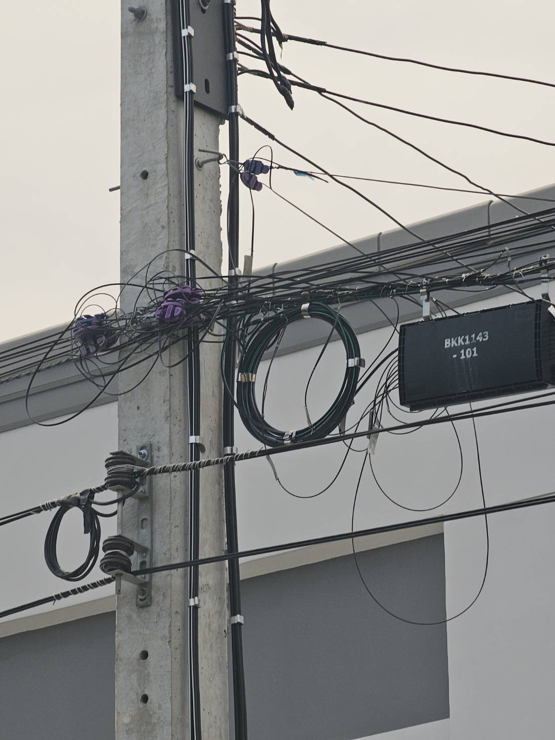 ขอร้องเรียนหน่วยงานที่รับผิดชอบ เรื่องสายสื่อสารห้อยระโยงระยางหรือไม่เป็นระเบียบบนเสาไฟฟ้าครับ