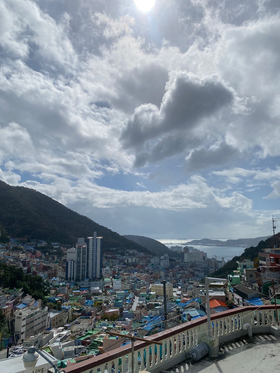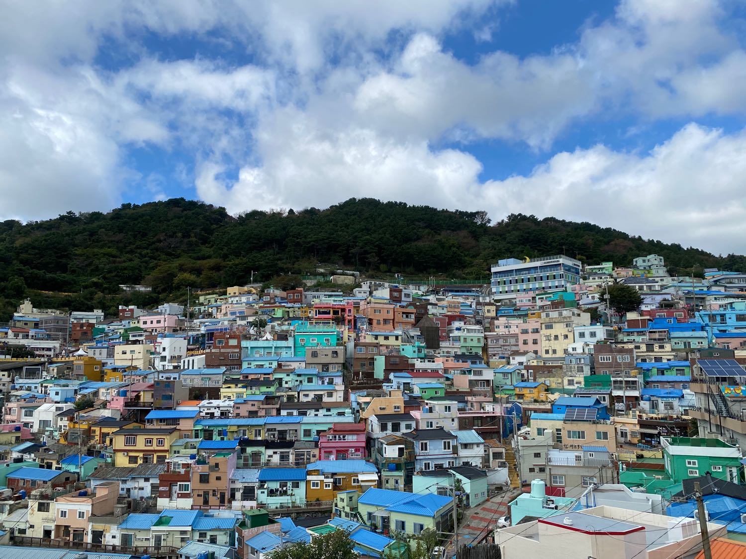 (Busan Gamcheon Culture Village) การเดินทางจากย่านแฮอุนแด ใช้เวลาเกือบ 2 ชม. แบบไม่เร่งรีบ พอถึงหมู่บ้านฟ้าใส แสงสวย และไม่ถึง 1 ชม. จากนั้นฝนก็ลงเม็ด แต่ก็พอให้เดินได้