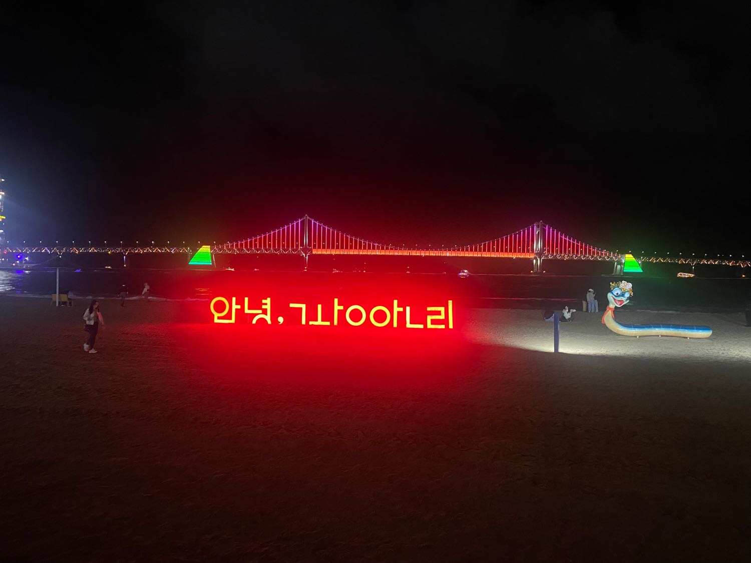 มาถึงสถานีรถไฟก็พากันขึ้นรถไฟ กลับไปแถวแฮอุนแด แวะซื้อขนมปังเกลือกินกัน แล้วพากันไปต่อ ที่หาดควังอัน (Gwangalli Beach) ไปดูวิวสะพานควังอัน (Gwangan Bridge)