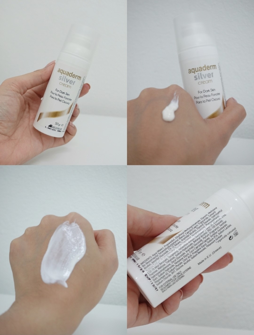 มีเพื่อนแนะนำให้ลอง Aquaderm Silver Cream (อะควาเดิร์ม ซิลเวอร์ ครีม) บอกว่าเป็น ครีมลดฝ้า ที่ใช้ส่วนผสมระดับไฮเอนด์จากยุโรป นำเข้าจากประเทศกรีซ ผ่านมาตรฐานความปลอดภัยของยุโรปด้วย ฟังแล้วก็อยากลองเพราะดูน่าเชื่อถือกว่าครีมทั่วไป