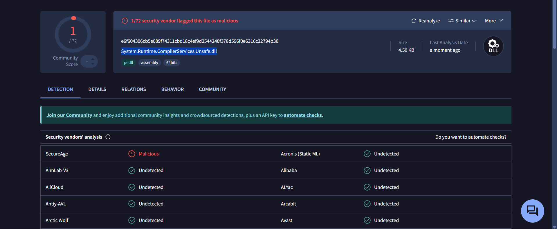 พบ System.Runtime.CompilerServices.Unsafe.dll ในโฟลเดอร์ติดตั้ง SMAPI ซึ่งเป็น Mod ของ Stardew Valley ถูกเตือนโดย VirusTotal