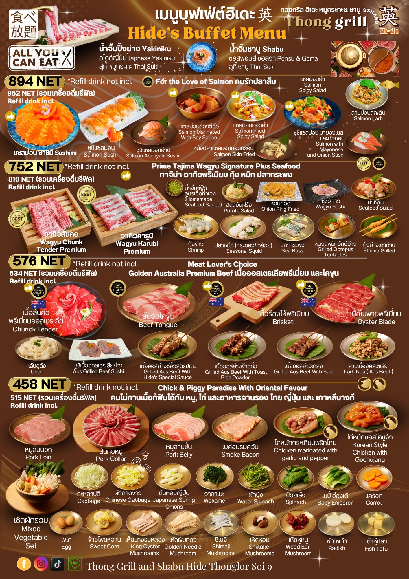 บุฟเฟ่ต์ของที่นี่จะมีทั้งหมด 4 ราคา เนื่องด้วยวันนี้ไม่ค่อยอยากปลาส้มเท่าไหร่ ก็เลยเอาแค่ 752 เน้นเนื้อพอครับ ร้านนี้มีบวกค่าน้ำเพิ่มด้วย