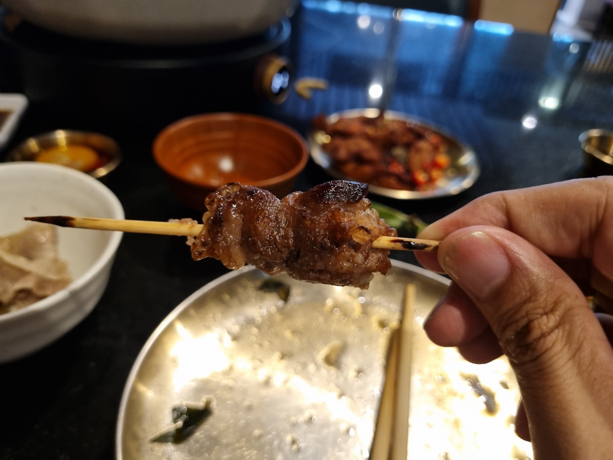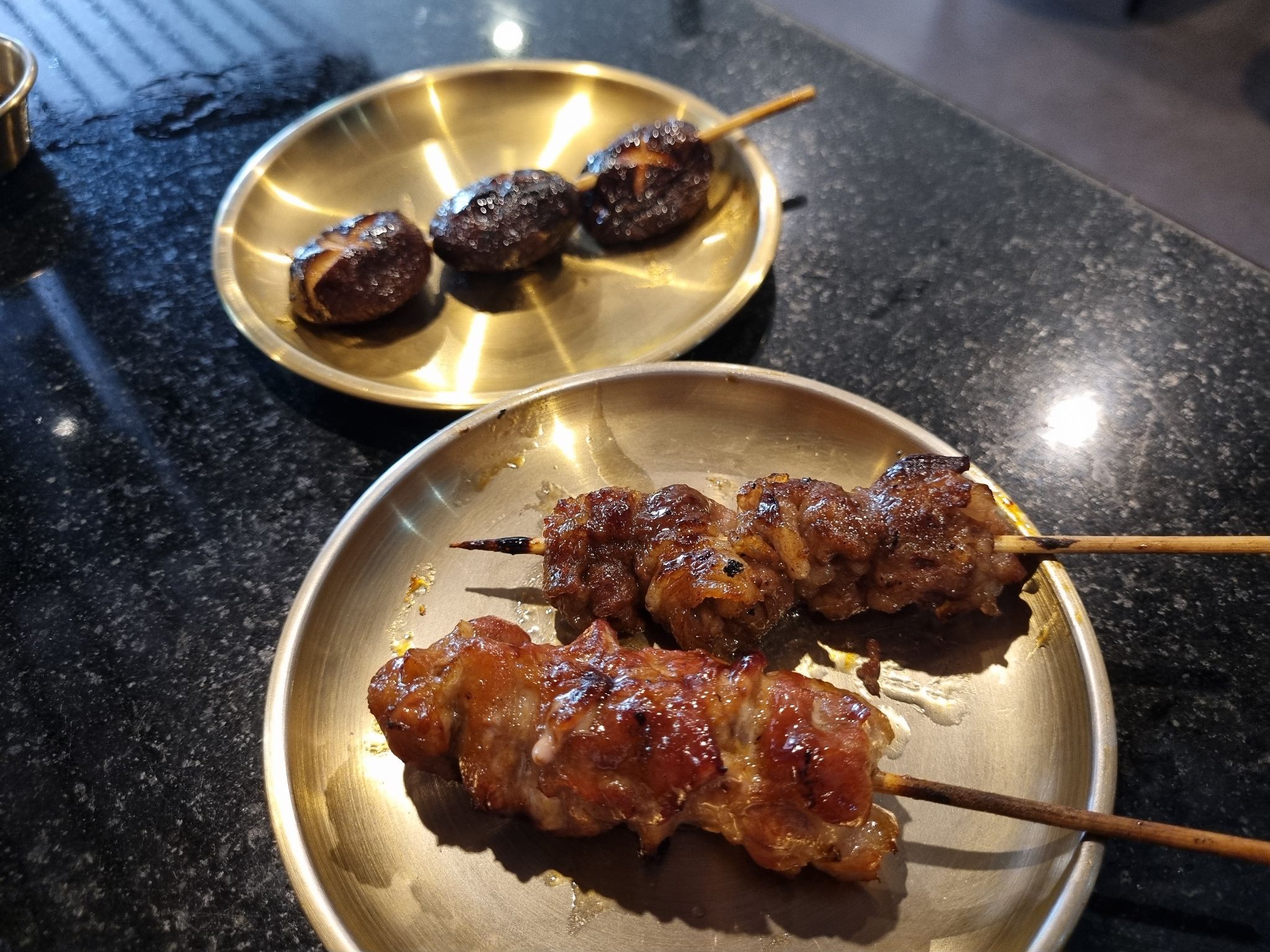 เหมือนจะเป็นร้านลูกผสมระหว่างปิ้งย่างและชาบู ซึ่งยังผสมผสานทั้งพวกเนื้อทอดแนวอิสาน และเมนูเสียบไม้แบบญี่ปุ่นด้วย