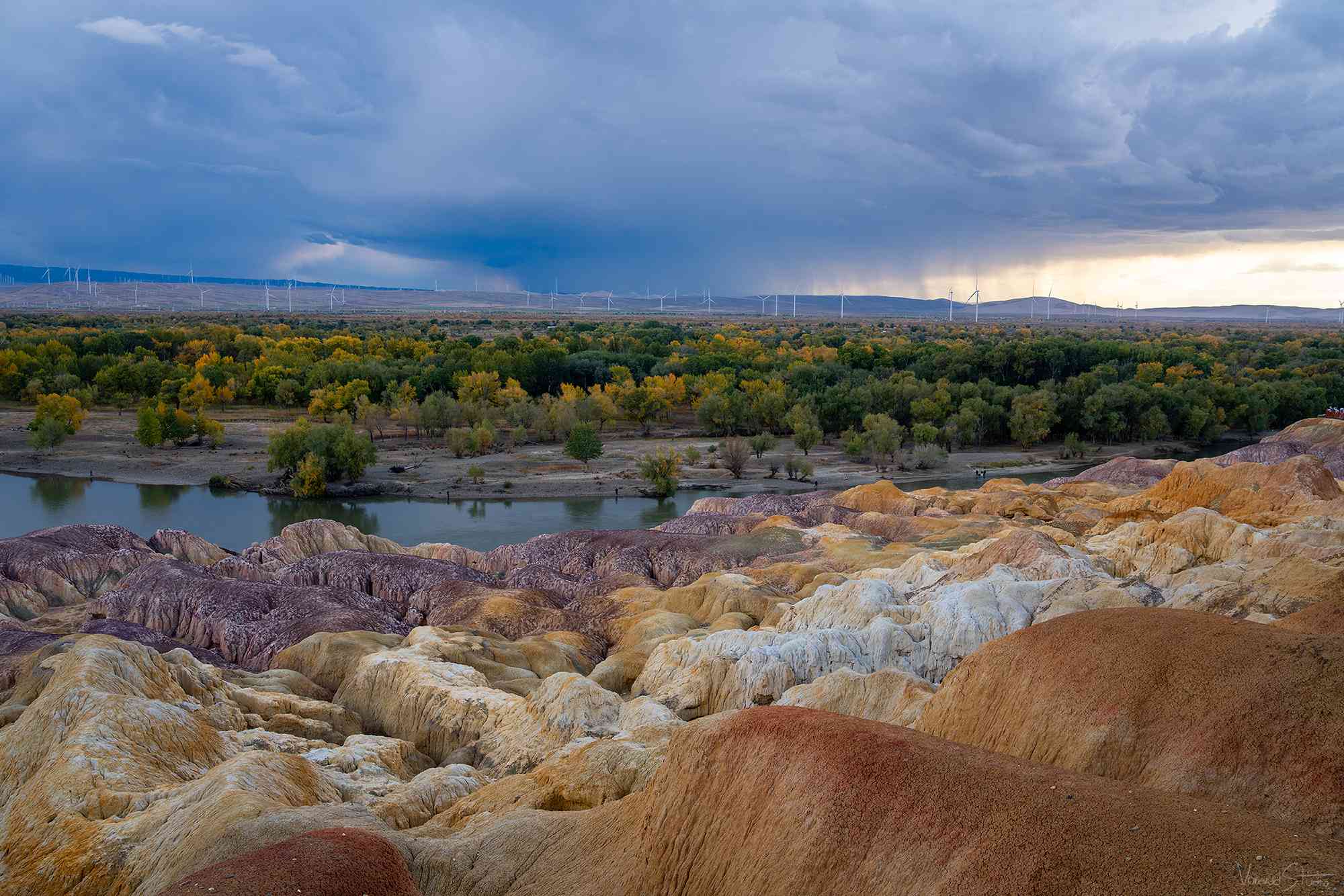 Day2 เราแวะที่ทะเลสาปอูหลุนกู่กันไม่นาน ก็เดินทางกันต่อไปที่จุดหมายหลักของเราในวันนี้ อู่ไฉ่ถาน หาดห้าสีแห่งซินเจียง โดยต้องนั่งรถไปอีก 2ชั่วโมงกว่าๆ หลังจากที่เพิ่งนั่งมา 8ชม ที่ยังสามารถไปเที่ยวต่อได้เพราะที่นี่ พระอาทิตย์ตกประมาณ 2ทุ่มกว่าๆครับ พระอาทิตย์ขึ้นก็ 8โมงกว่าๆ เลยยังไปกันต่อได้