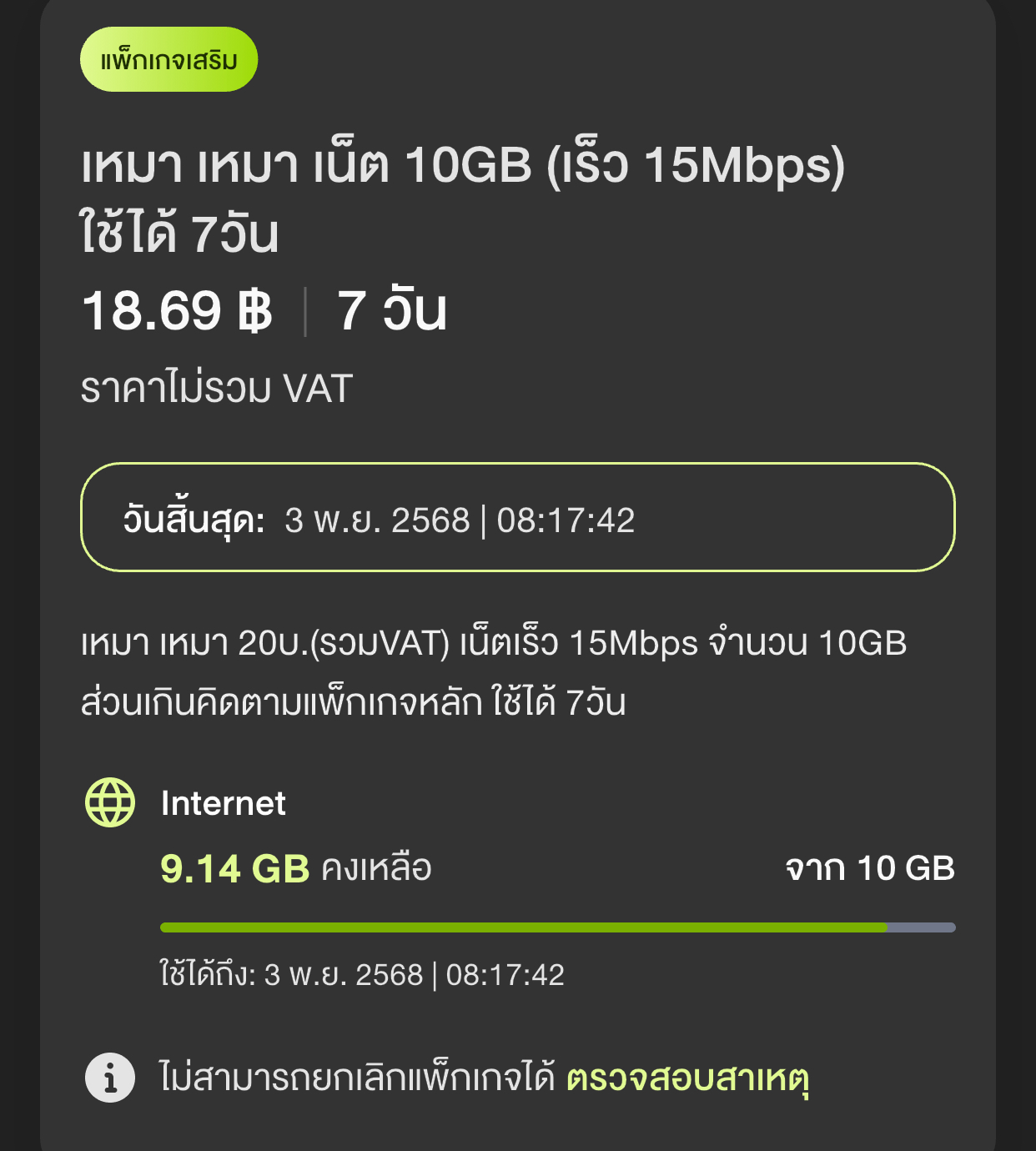 เเพ็คเก็จเน็ต ais ขึ้นสิ้นสุดการใช้งานอินเตอร์เน็ตวันที่ 31 สิงหา เเต่วันนี้วันที่ 28 ใช้ไม่ได้เเล้ว