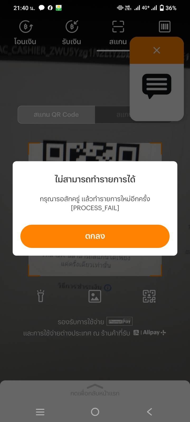 ทำไมสแกน QR code พร้อมเพย์ของธนาคาร จากทรูมันนี่วอลเล็ท เงินโดนหักออกไปแต่เงินไม่เข้าบัญชี