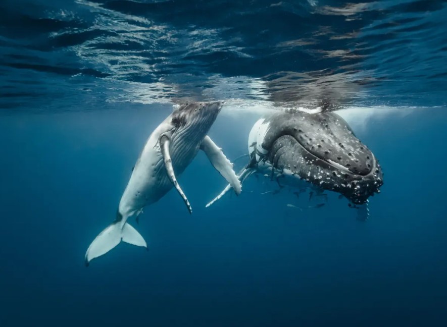 นี่คือวิธีการเลี้ยงลูกของปลาวาฬใต้น้ำ