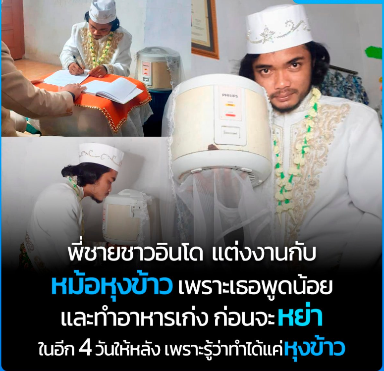 ชาวอินโด แต่งงานกับหม้อหุงข้าว เพราะ 'พูดน้อย' 'ทำอาหารเก่ง'