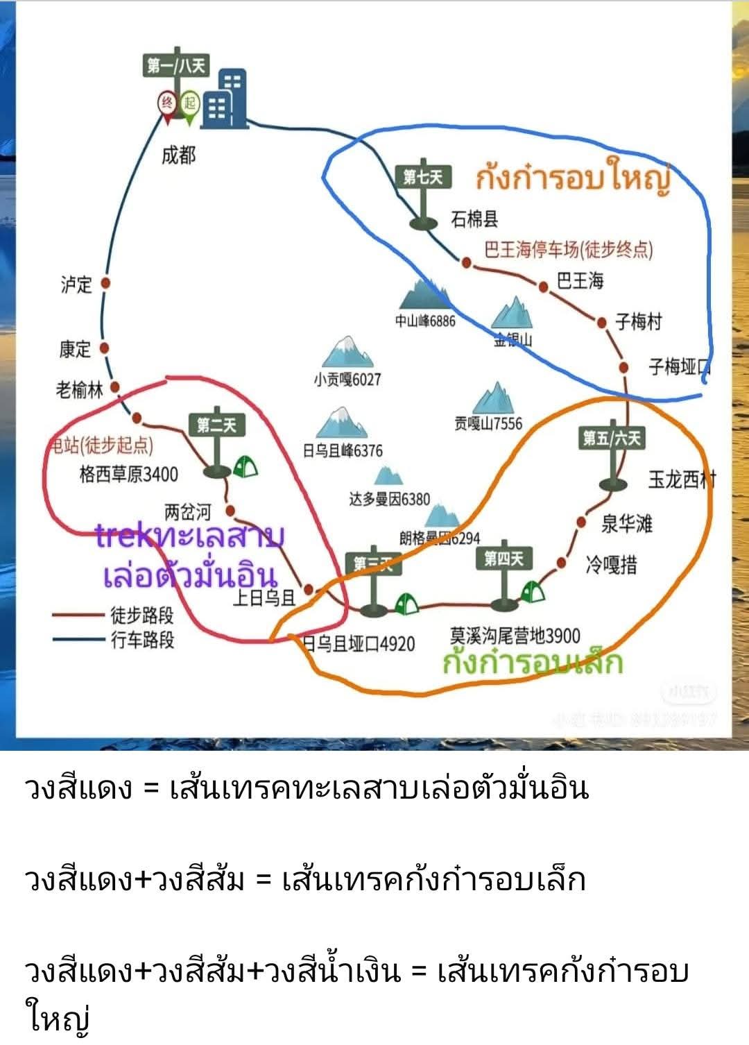 ** ข้อมูลเพิ่มเติม: สรุปโปรแกรมการเดินทางไปเทรค "ทะเลสาบเล่อตัวมั่นอิน+ก้งก๋ารอบเล็ก" ตั้งแต่เฉิงตูและกลับถึงเฉิงตู