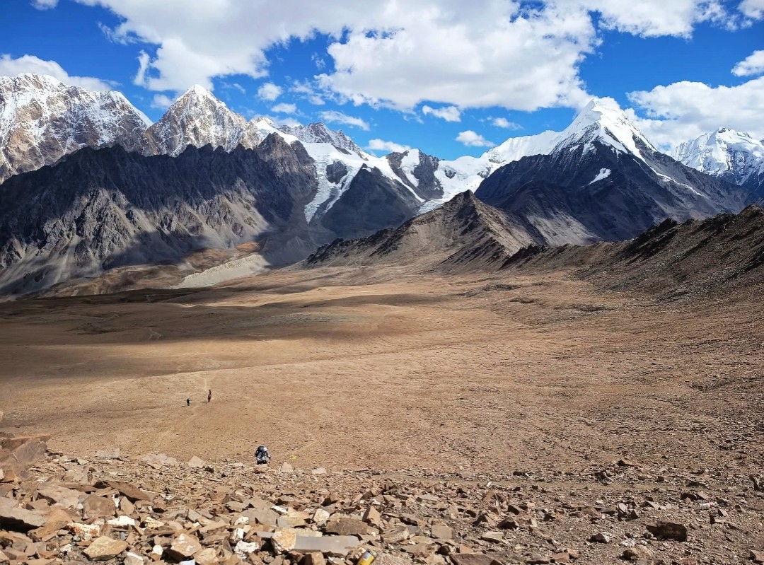 วิวระหว่างเทรคข้ามพาสรื่อต๋ามั่นแล้วมองย้อนไปทางจุดกางเต็นท์ส้างรื่ออูเฉี่ย